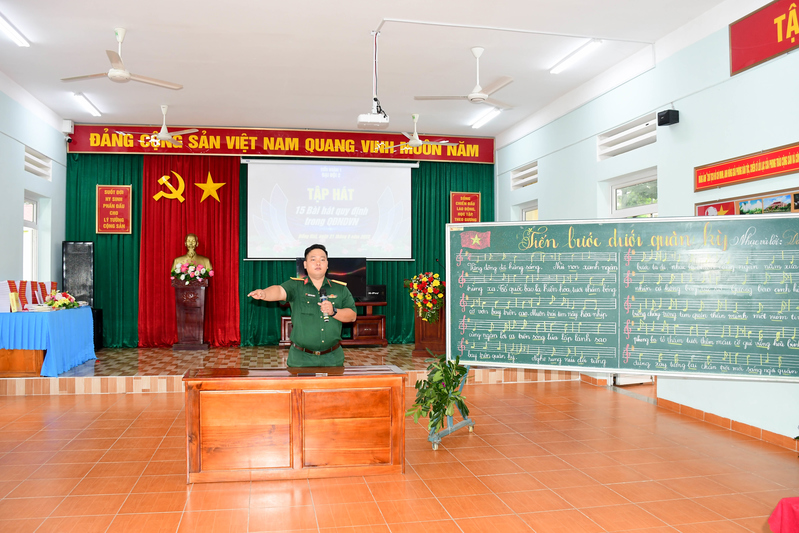 Cán bộ đơn vị hướng dẫn tập hát 15 bài hát quy định