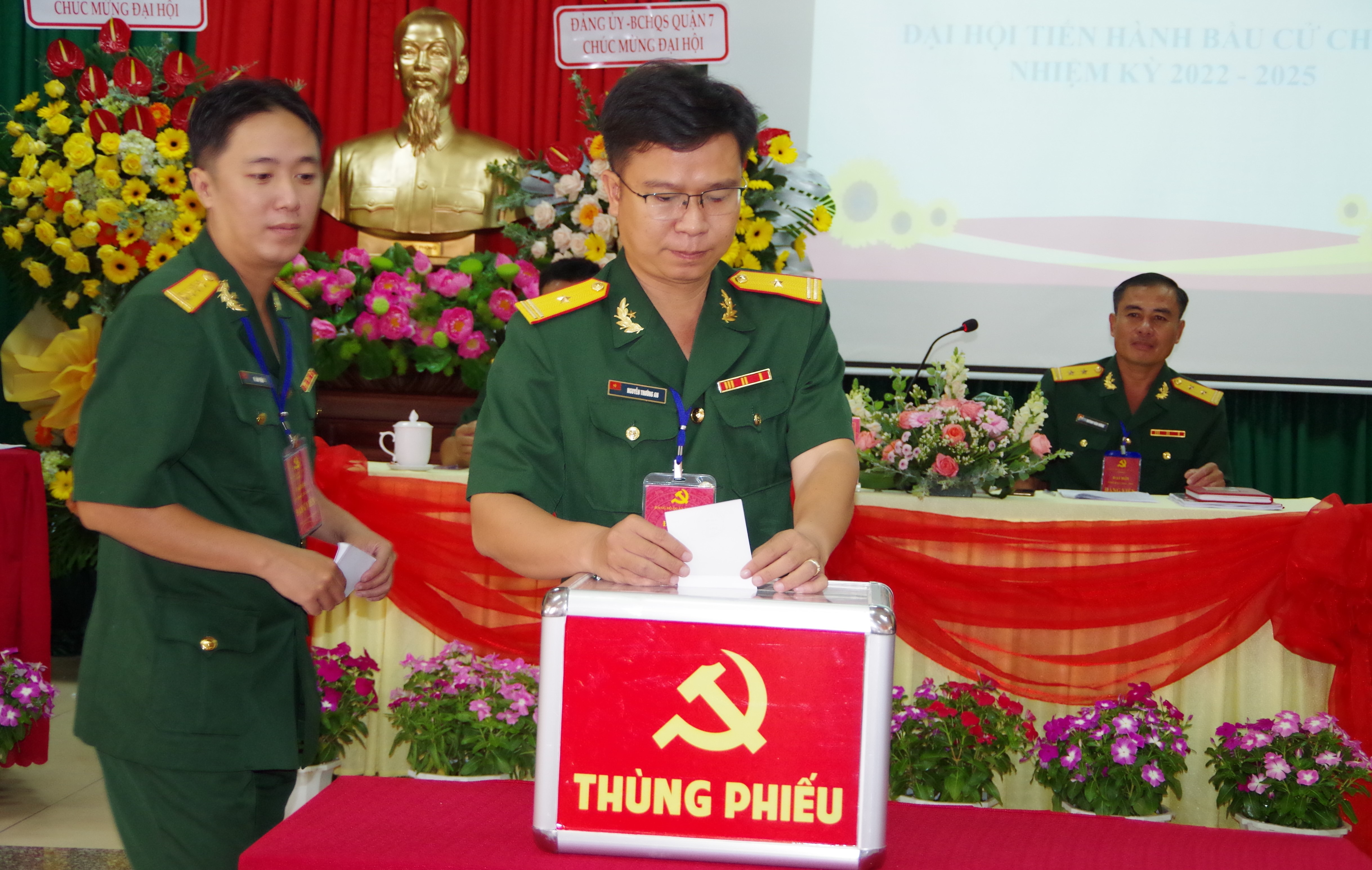 Với tinh thần đoàn kết, dân chủ, các đại biểu tham dự đại hội đã bỏ phiếu bầu Chi ủy nhiệm kỳ 2022 - 2025 gồm 3 đồng chí. Đồng chí Huỳnh Văn Hừng, Chính trị viên phó Ban CHQS quận được đại hội tín nhiệm bầu làm bí thư chi bộ.