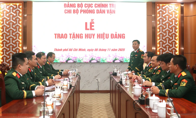 (QK7 Online) – Ngày 6/11, Chi bộ Phòng Dân vận, Đảng bộ Cục Chính trị Quân khu 7 tổ chức lễ trao tặng Huy hiệu 30 năm tuổi Đảng cho Thượng tá Nguyễn Thành Hưng. Đại tá Phạm Anh Tuấn, Đảng ủy viên Đảng ủy Cục Chính trị, Trưởng Phòng Dân vận dự lễ.