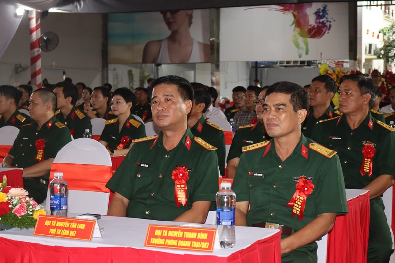 Đại tá Nguyễn Tấn Linh, Phó Tư lệnh Quân khu 7; Đại tá Nguyễn Thanh Bình, Trưởng phòng Doanh trại Quân khu 7 dự lễ.