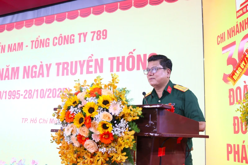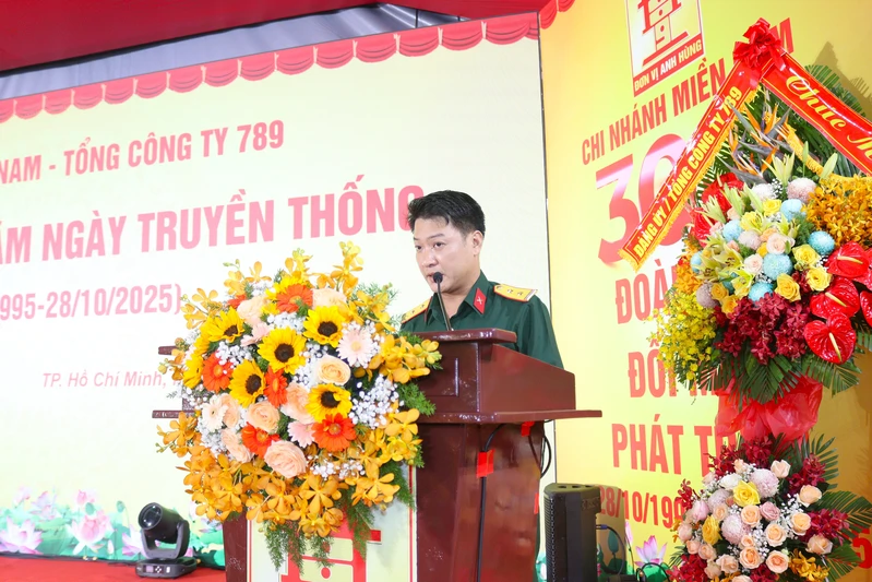 Trung tá Đào Huy Điệp, Giám đốc Chi nhánh miền Nam đọc diễn văn kỷ niệm, khẳng định những thành tựu nổi bật và định hướng phát triển trong giai đoạn mới.