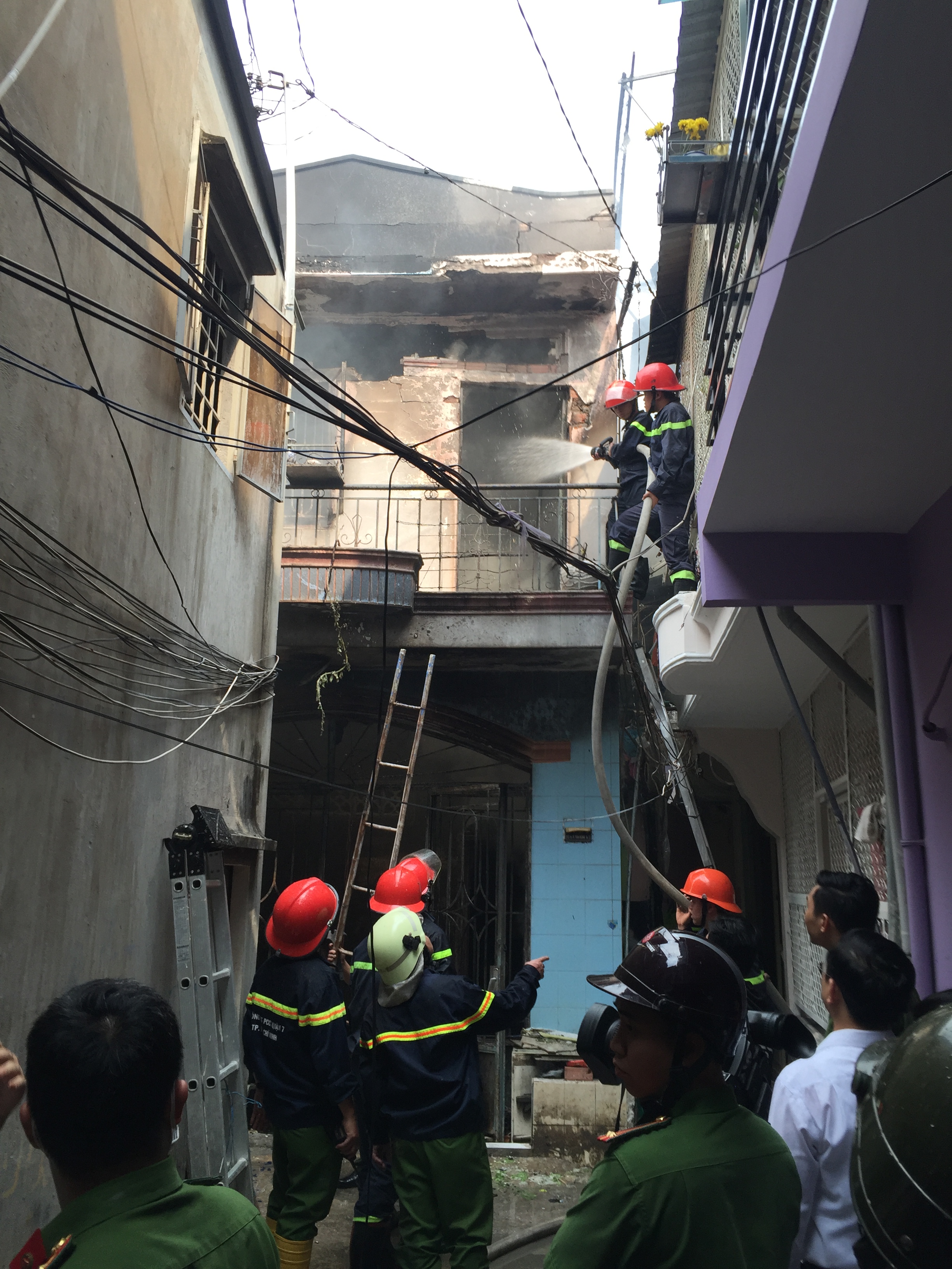 Các lực lượng tham gia chữa cháy tại số nhà 174/1 đường Trần Xuân Soạn, khu phố 4, phường Tân Hưng, Quận 7
