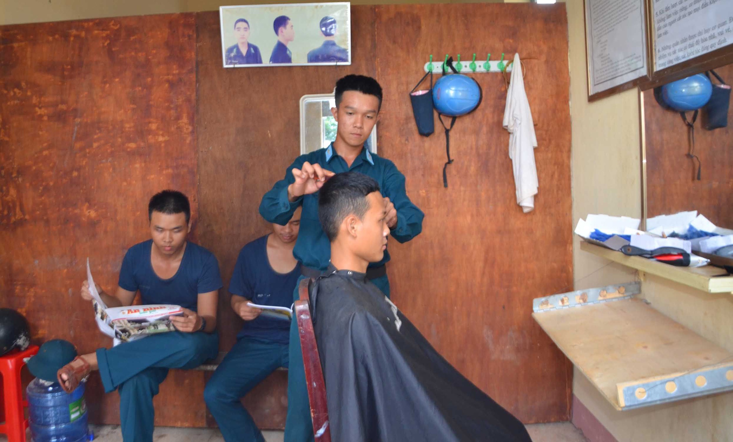 Các chiến sĩ Trung đoàn 261 thành lập các tổ cắt tóc trong đơn vị để tiết kiệm chi phí cắt tóc.