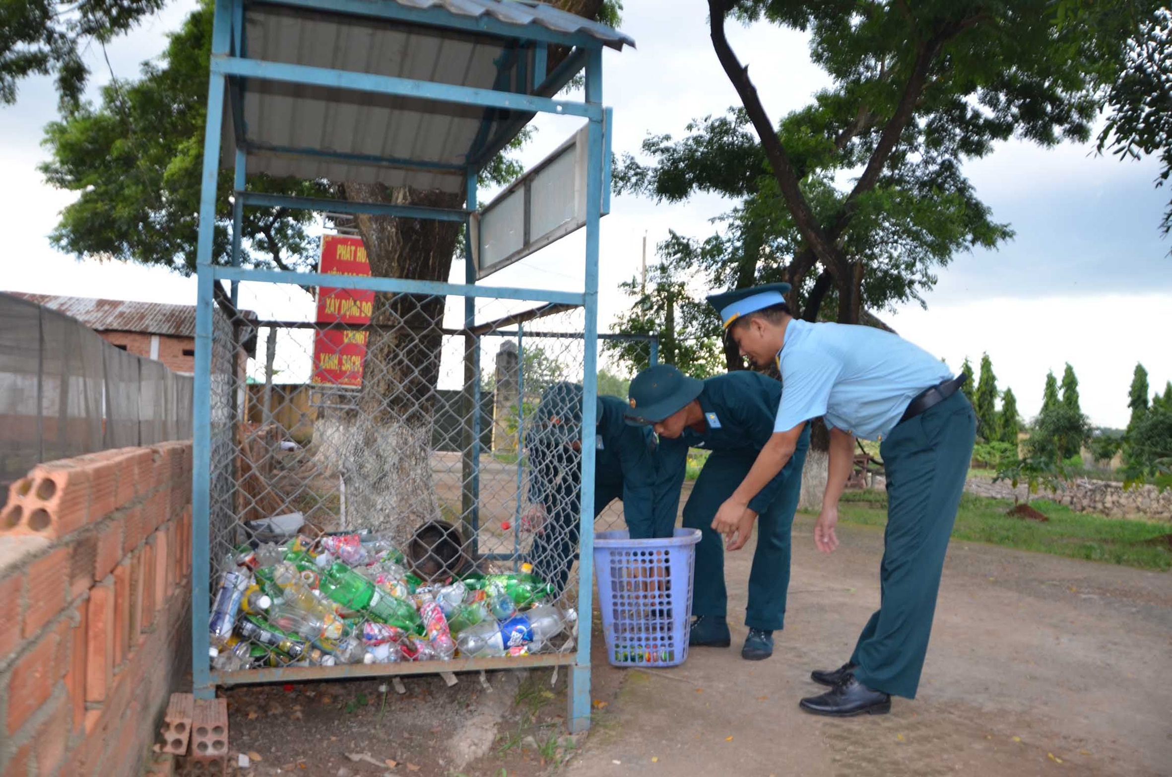 Chiến sĩ Tiểu đoàn 95 thu gom ve chai sau giờ huấn luyện.