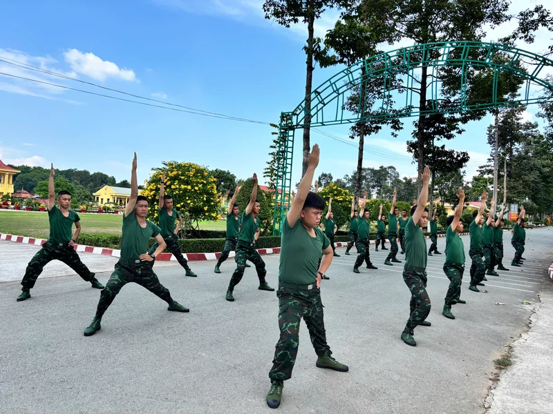 Mỗi buổi sáng tại đơn vị bắt đầu bằng tiếng kèn báo thức quen thuộc. Chỉ trong thời gian ngắn, sân chào cờ đã rộn ràng bước chân của chiến sĩ mới. Những tiếng hô “một, hai” dứt khoát, vang xa làm bừng lên sức sống của một ngày mới. Các bài thể dục buổi sáng không chỉ rèn luyện thể lực mà còn giúp bộ đội hình thành nền nếp chính quy, tạo tâm thế sẵn sàng bước vào ngày học tập, công tác.