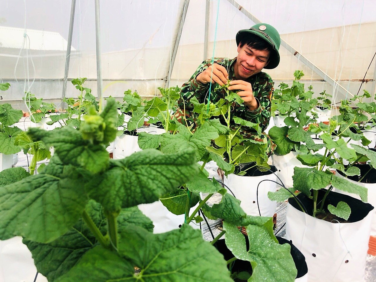 Chiến sĩ chăm sóc cảnh quan môi trường.