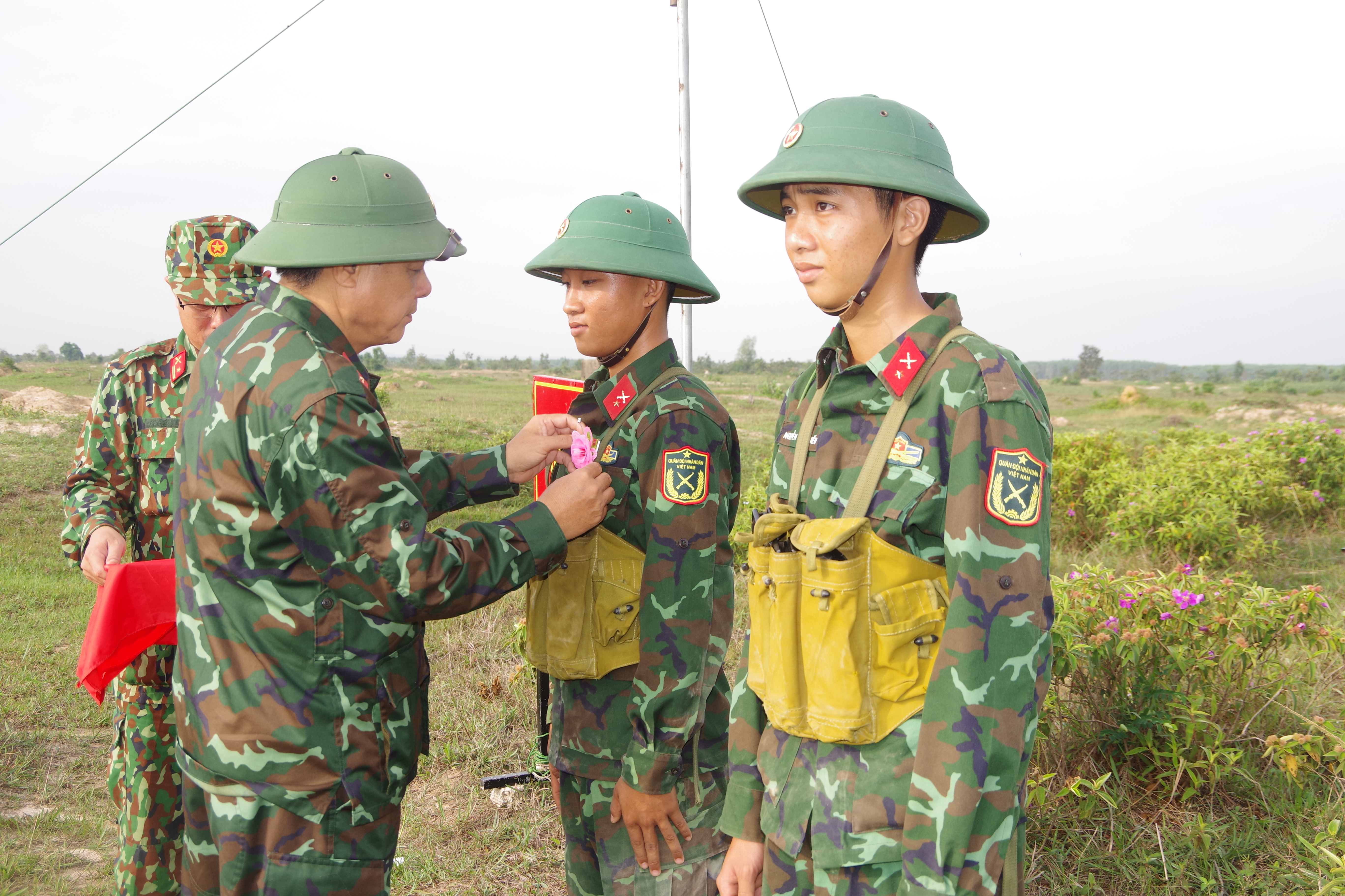Thượng tá Nguyễn Chí Thắng, Phó Chỉ huy trưởng, Tham mưu trưởng Trường bắn Quốc gia khu vực 3 tặng bông hồng cho chiến sĩ bắn giỏi.