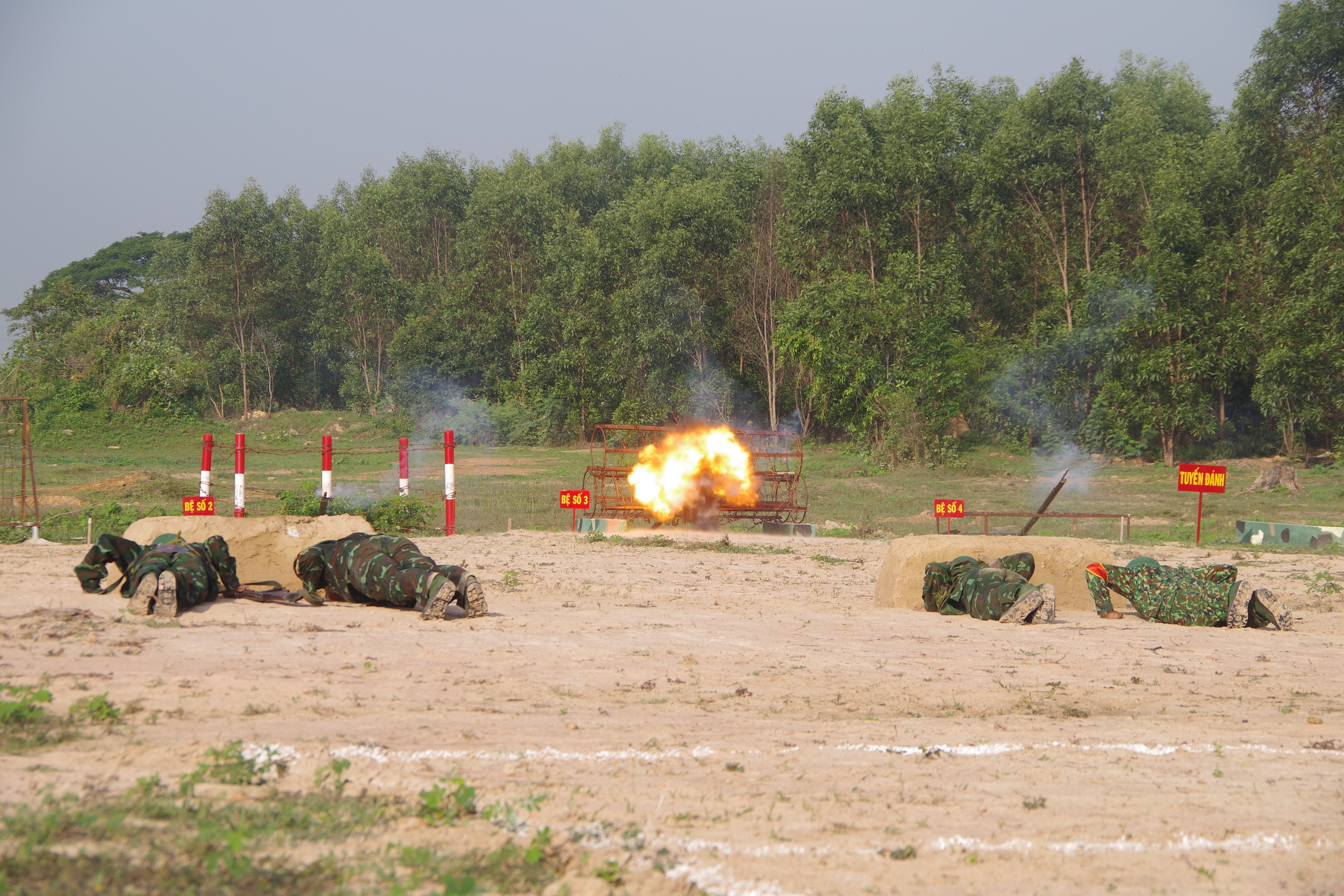 Bộ đội thực hành đánh thuốc nổ.