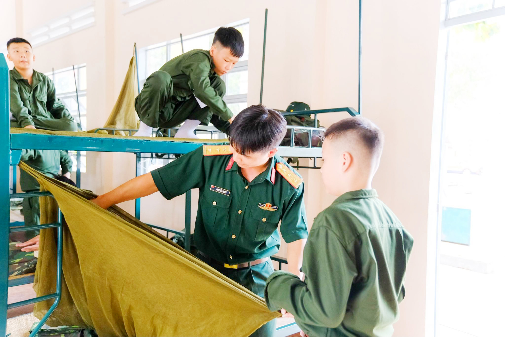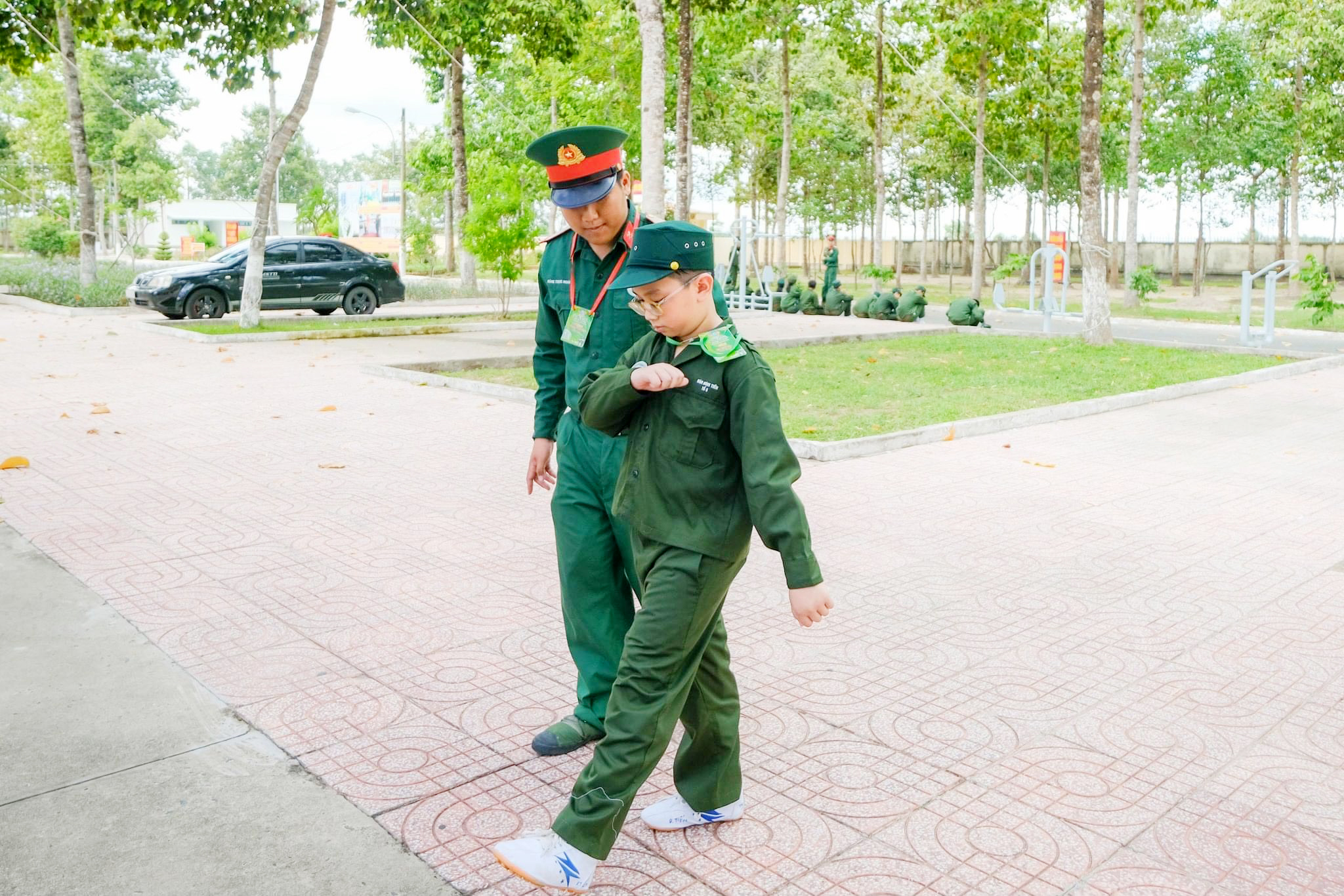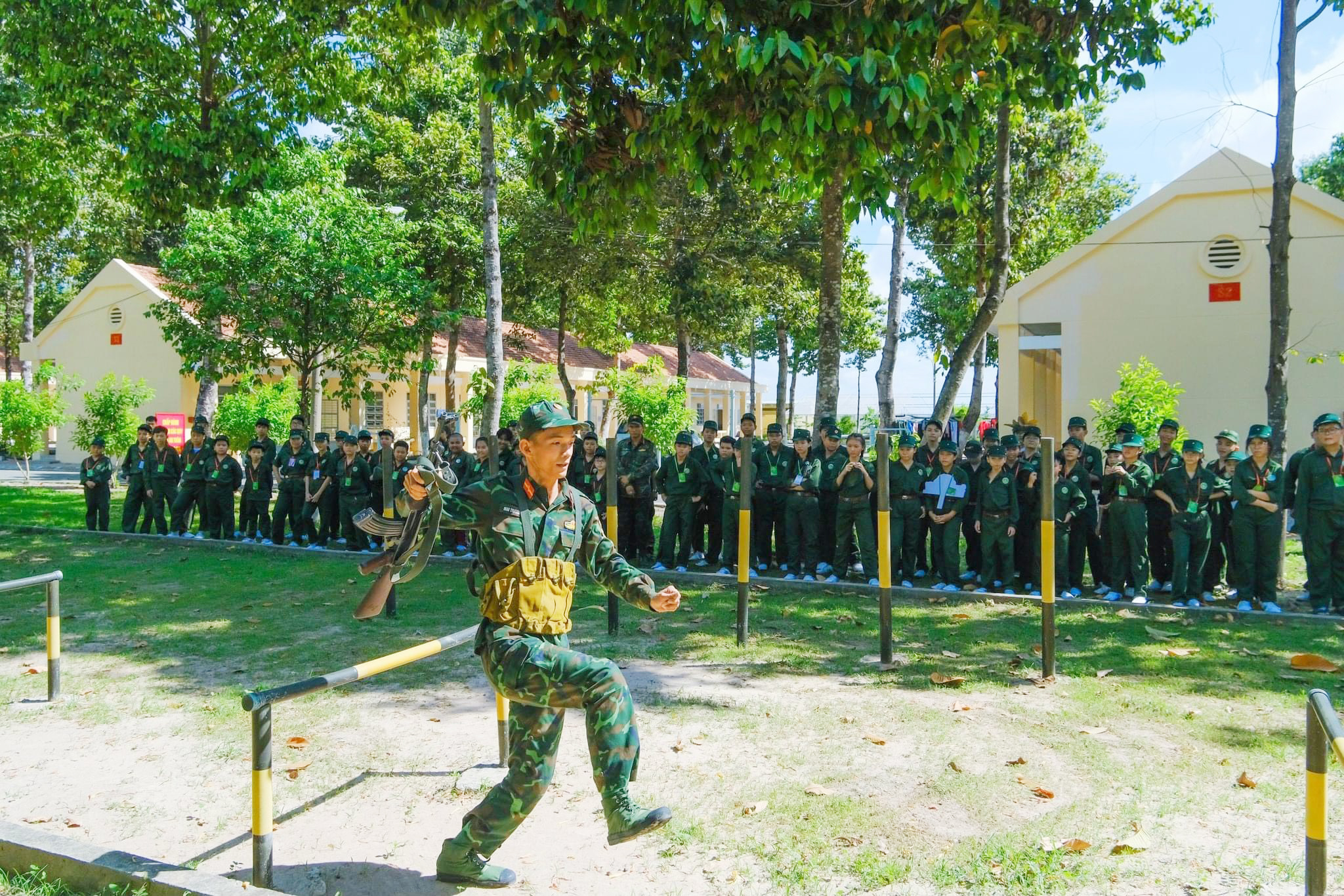 Tại Trung đoàn 6, Bộ CHQS tỉnh Bình Dương, 200 em học sinh được trải nghiệm đời sống trong quân ngũ như tập các bài thể dục buổi sáng, gấp nội vụ, các tư thế vận động trên chiến trường, tăng gia, viết thư về cho gia đình và các hoạt động đội, nhóm...