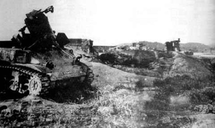 Xe tăng và trận địa hỏa lực của Pháp bị bộ đội ta tiêu diệt trong trận Tu Vũ. Ảnh: Baotanglichsu.vn