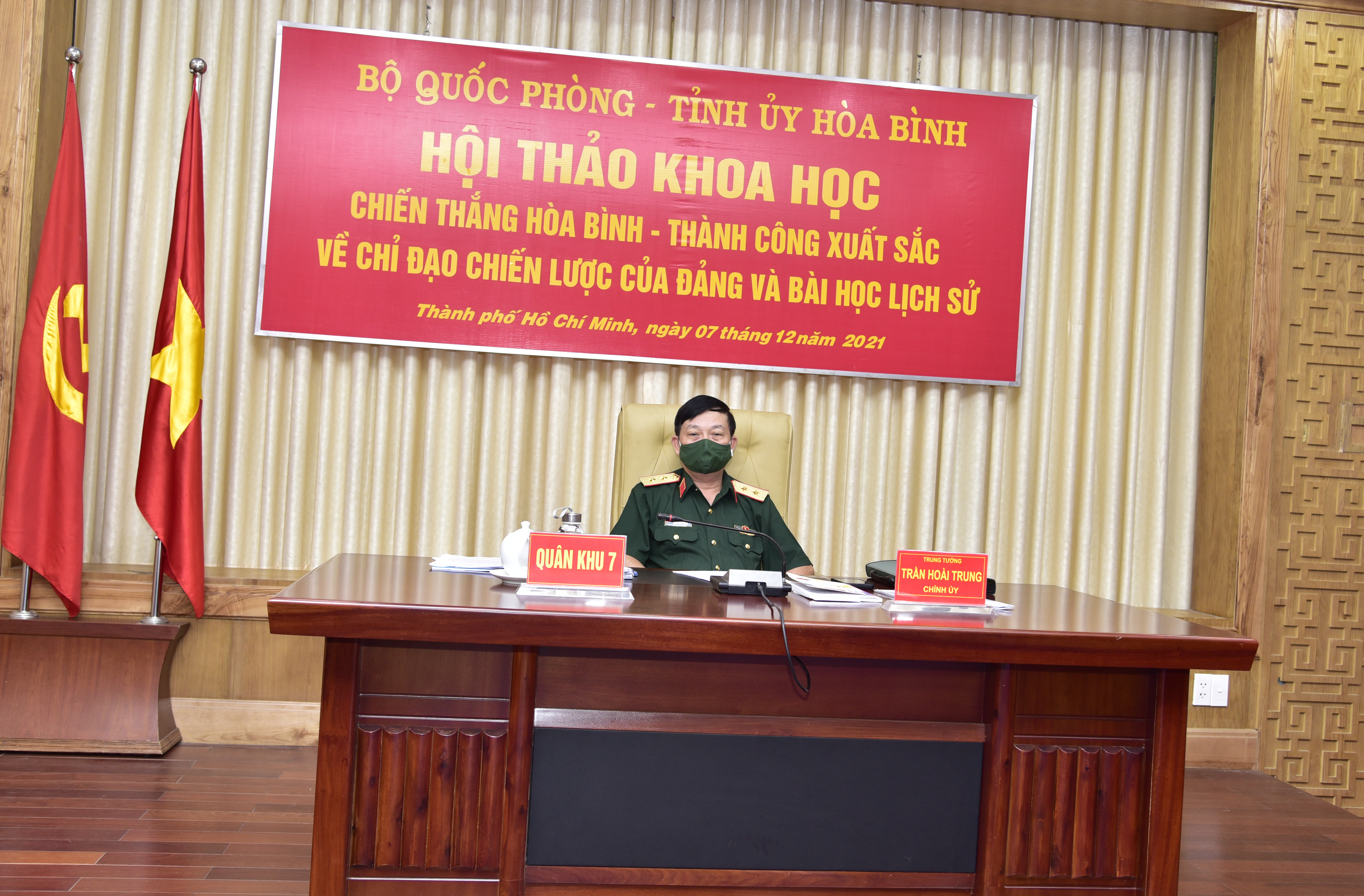 Dự hội thảo có Thượng tướng, Tiến sĩ Lê Huy Vịnh, Ủy viên Trung ương Đảng, Thứ trưởng Bộ Quốc phòng; Trung tướng Trịnh Văn Quyết, Ủy viên Trung ương Đảng, Phó Chủ nhiệm Tổng cục Chính trị Quân đội Nhân dân Việt Nam; đồng chí Ngô Văn Tuấn, Ủy viên Trung ương Đảng, Bí thư Tỉnh ủy Hòa Bình cùng các đồng chí tướng lĩnh Quân đội, nhân chứng lịch sử. Trung tướng Trần Hoài Trung, Bí thư Đảng ủy, Chính ủy Quân khu chủ trì điểm cầu Quân khu 7.