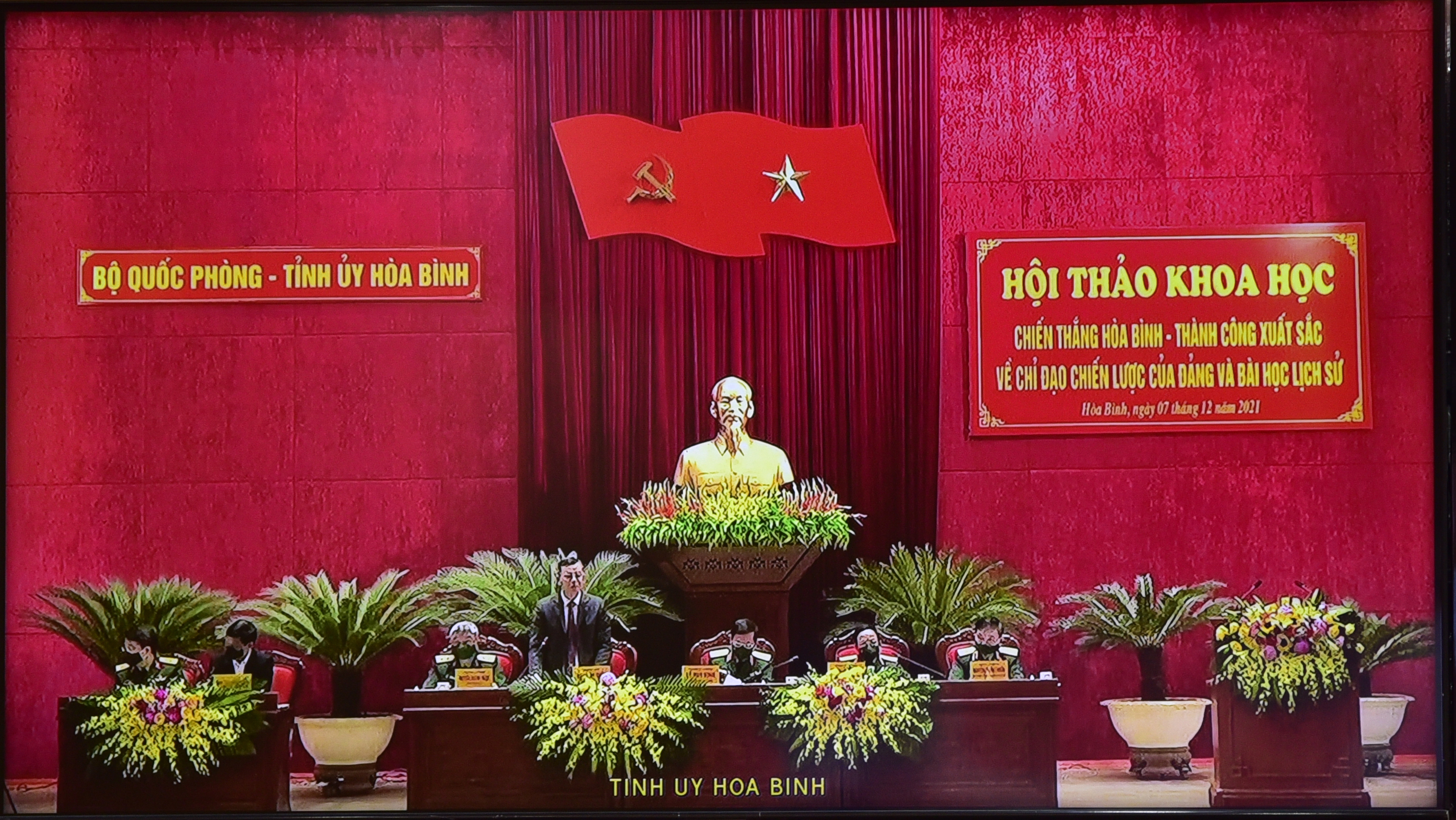 (QK7 Online) - Chiến thắng Hòa Bình mãi là mốc son trong tiến trình cuộc kháng chiến chống thực dân Pháp của dân tộc Việt Nam, thể hiện tầm nhìn chiến lược, sự lãnh đạo, chỉ đạo đúng đắn, tài tình, sáng tạo của Đảng; về sự phát triển của nghệ thuật quân sự và sức mạnh của chiến tranh Nhân dân Việt Nam... Đó là khẳng định của Thượng tướng, Tiến sĩ Lê Huy Vịnh, Ủy viên Trung ương Đảng, Thứ trưởng Bộ Quốc phòng tại Hội thảo khoa học cấp Bộ Quốc phòng với chủ đề “Chiến thắng Hòa Bình – Thành công xuất sắc về chỉ đạo chiến lược của Đảng và bài học lịch sử” được tổ chức bằng hình thức trực tuyến tại Tỉnh ủy Hòa Bình với 13 điểm cầu trong toàn quân.