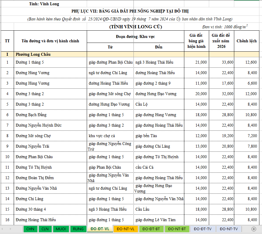Dự thảo bảng giá đất Vĩnh Long năm 2026