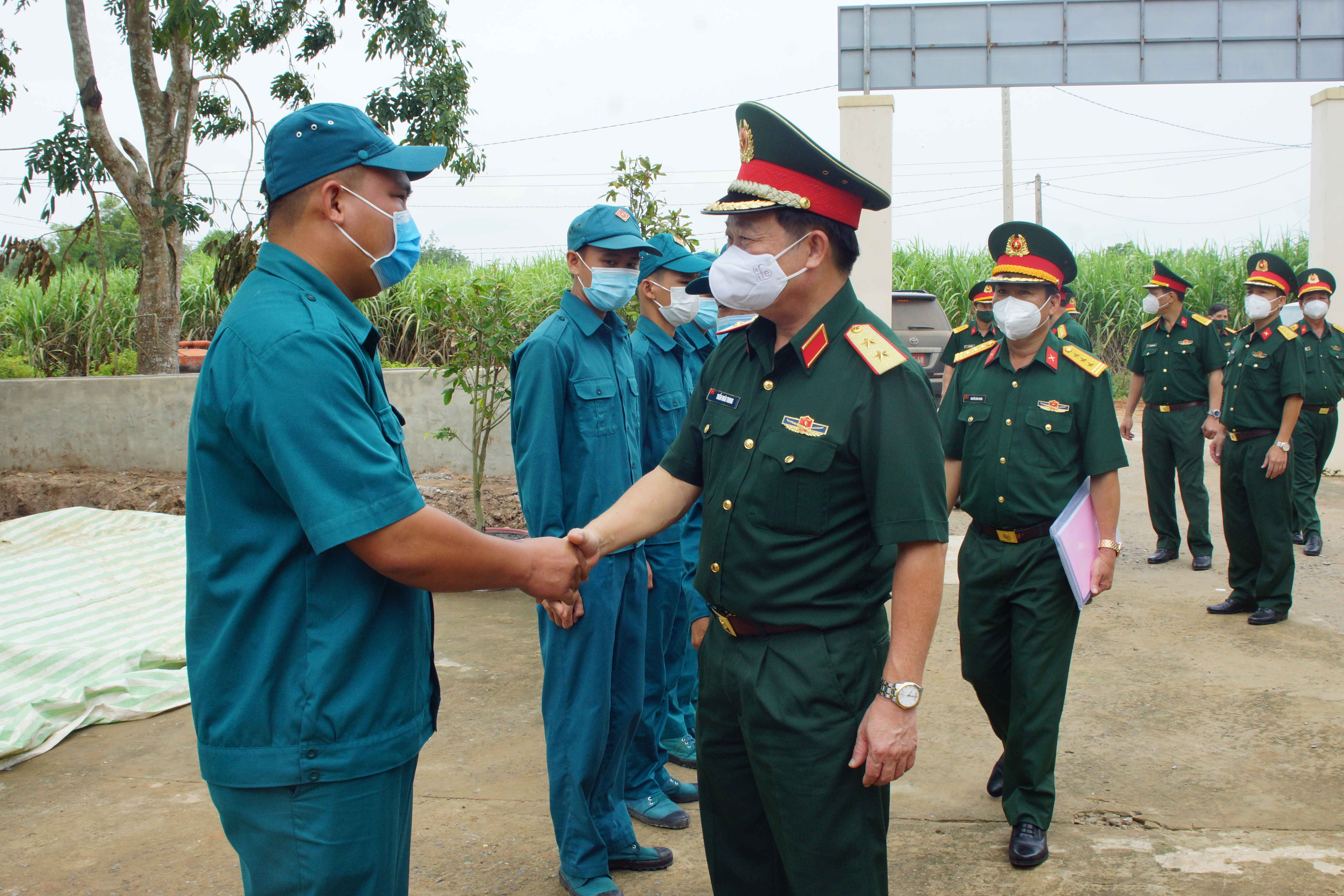 Đồng chí Chính ủy Quân khu thăm hỏi các hộ dân ở Điểm dân cư liền kề chốt dân quân biên giới Bến Cừ xã Ninh Điền, huyện Châu Thành, tỉnh Tây Ninh