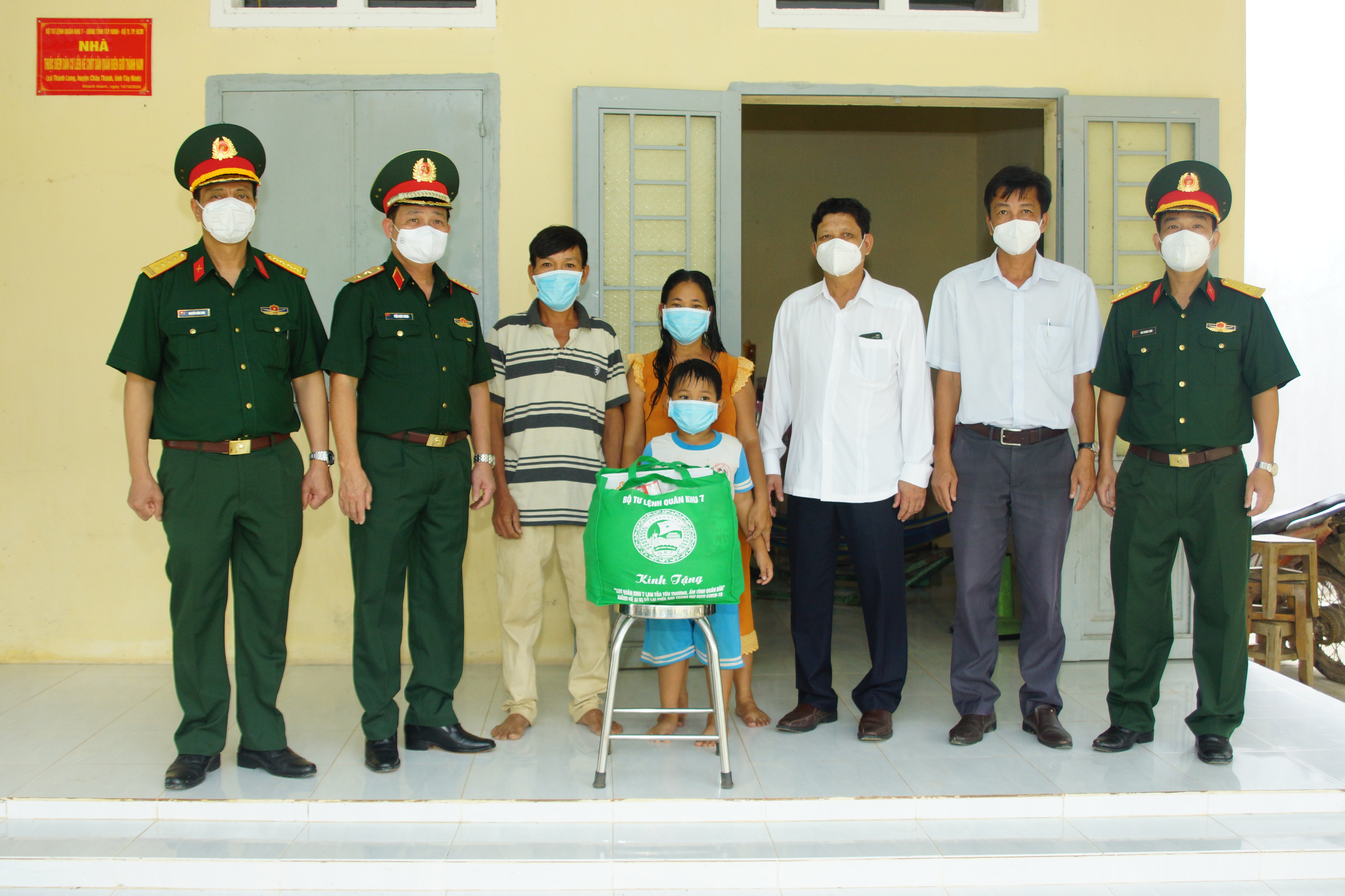 Đoàn công tác Quân khu 7 tặng quà cho các hộ dân ở Điểm dân cư liền kề chốt dân quân biên giới Thành Nam, xã Thành Long, huyện Châu Thành, tỉnh Tây Ninh