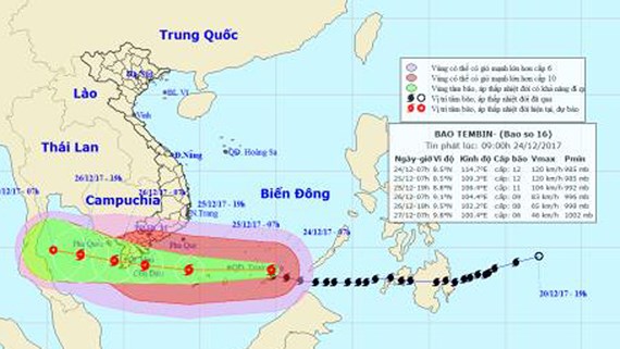 Đến 6g sáng nay 24-12 các tỉnh đã thông báo, kiểm đếm, hướng dẫn cho 60.413 phương tiện/307.742 lao động về diễn biến, hướng di chuyển của bão để chủ động phòng tránh (hoạt động tại khu vực quần đảo Trường Sa 131 tàu/1.117 lao động: Quảng Ngãi: 22 tàu/371 lao động; Bình Định: 3 tàu/20 lao động; Phú Yên: 100 tàu/667 lao động; Khánh Hòa: 5 tàu/45 lao động; Bình Thuận: 1 tàu/14 lao động); tổ chức hướng dẫn cho các phương tiện neo đậu trú tránh.