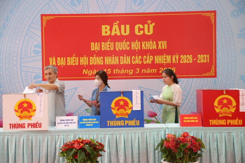 Sáng 15/3, Tổ bầu cử số 2, phường Xuân Hòa, TP.HCM đã khai mạc chương trình bầu cử đoàn đại biểu Quốc hội khóa XVI và đại biểu HĐND các cấp nhiệm kỳ 2026-2031. Tham dự bầu cử có đồng chí Nguyễn Văn Được, Ủy viên Trung ương Đảng, Phó Bí thư Thành ủy, Chủ tịch UBND TP.HCM; đồng chí Nguyễn Tấn Dũng, nguyên Ủy viên Bộ Chính trị, nguyên Thủ tướng Chính phủ cùng phu nhân.