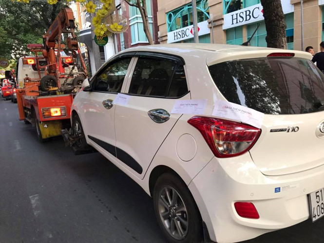 Một ô tô đậu vỉa hè ở Q.1 bị xử phạt trong chiến dịch lập lại trật tự vỉa hè ở TP.HCM