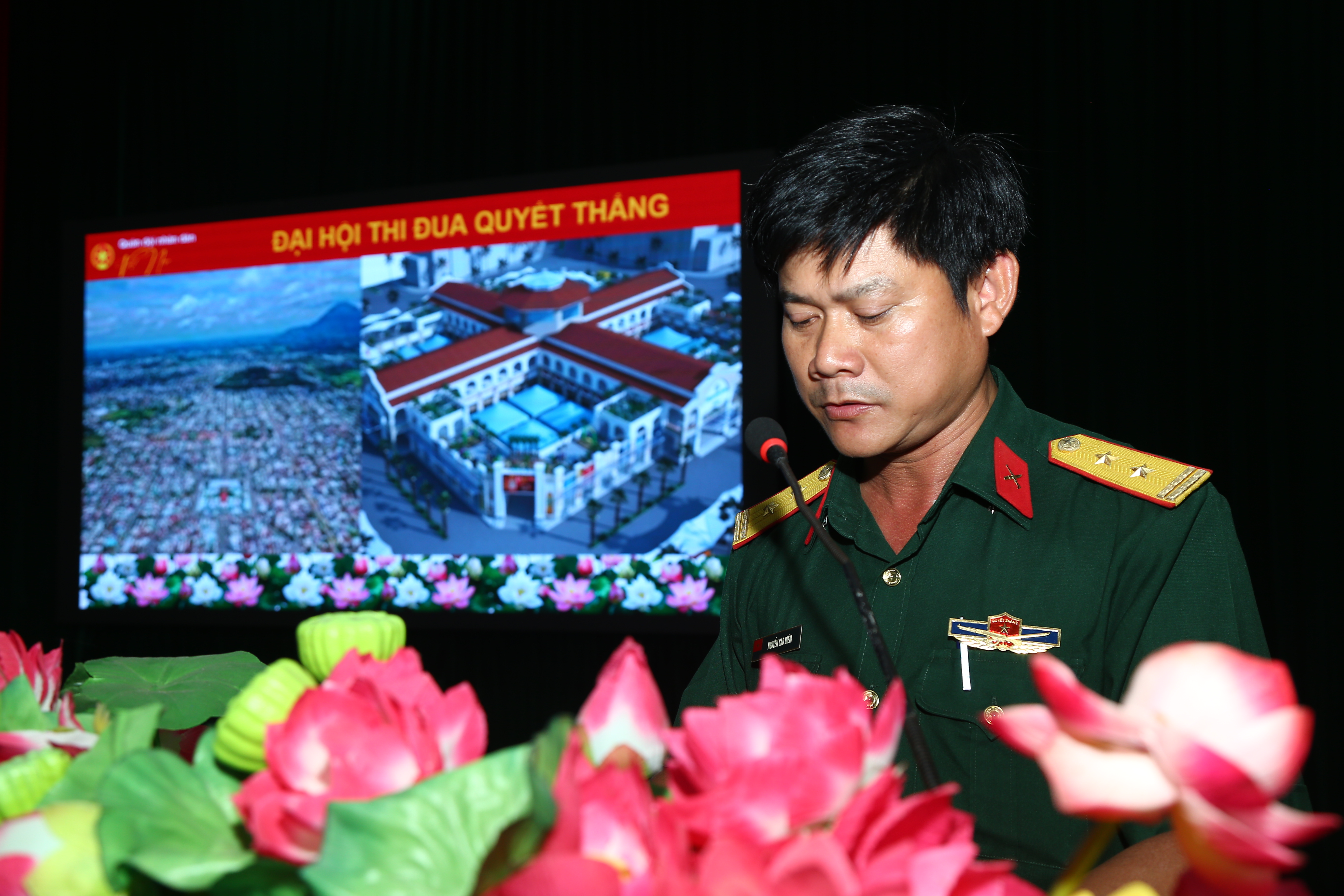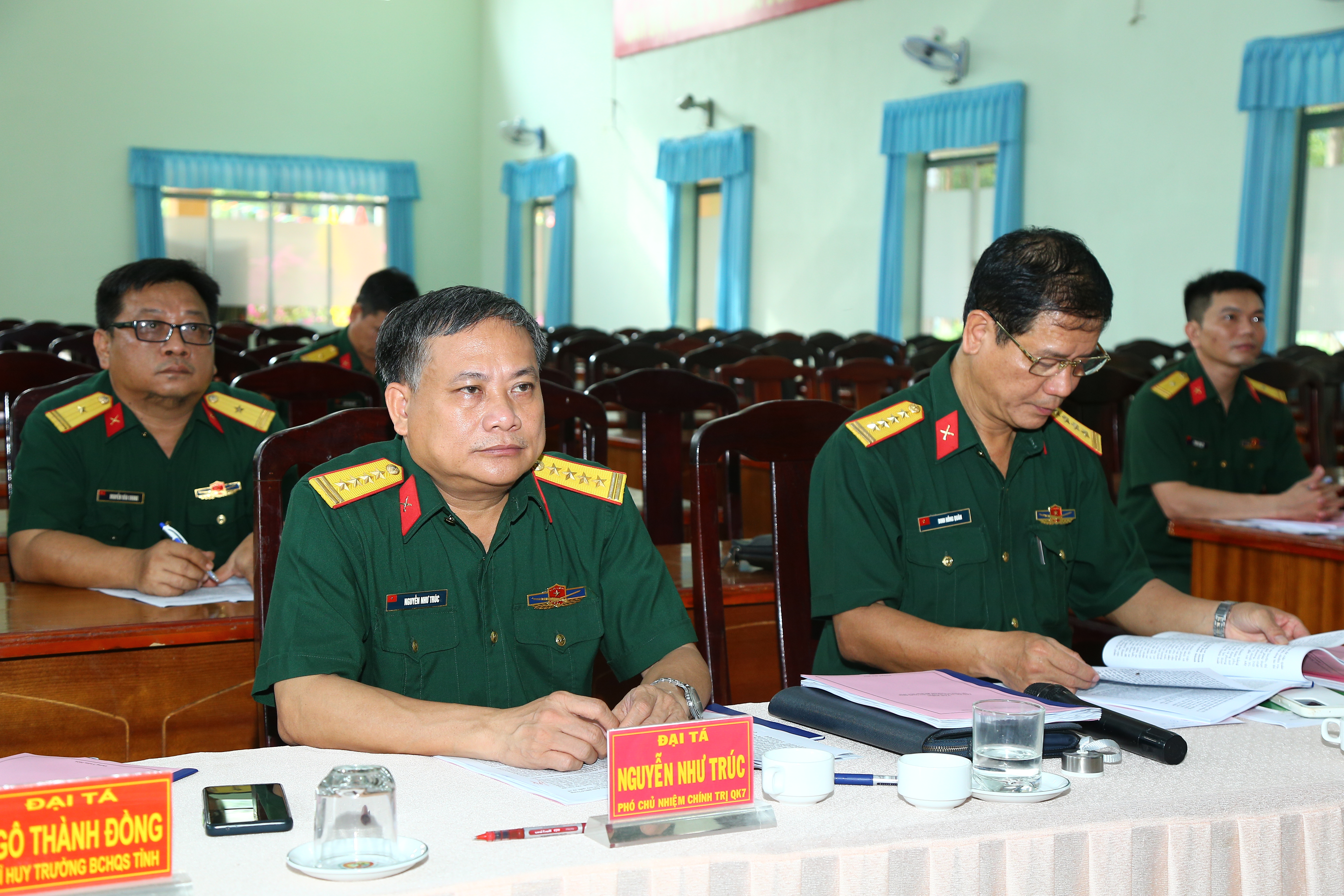 Đại tá Nguyễn Như Trúc, Phó Chủ nhiệm Chính trị Quân khu theo dẽo chương trình tổng duyệt.