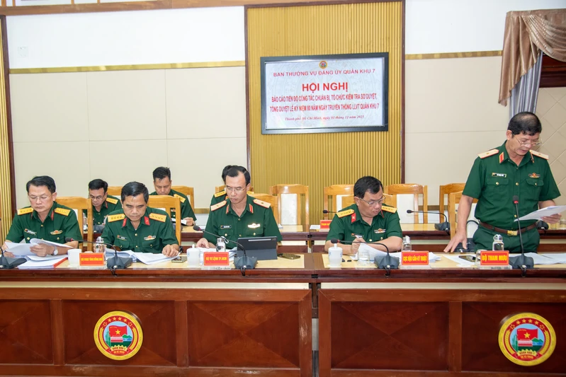 Theo báo cáo của các cơ quan, đến nay mọi công tác chuẩn bị cho Lễ kỷ niệm 80 Ngày Truyền thống lực lượng vũ trang Quân khu 7 đã được chuẩn bị khẩn trương, chu đáo từ công tác đón tiếp đại biểu, nghi lễ, đảm bảo an ninh an toàn, công tác tuyên truyền trên các phương tiện thông tin đại chúng; triển khai, xây dựng các công trình, hoạt động về nguồn, chào mừng.