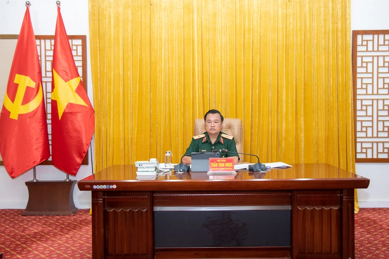 Thiếu tướng Trần Vinh Ngọc, Bí thư Đảng ủy, Chính ủy Quân khu 7 chủ trì hội nghị.