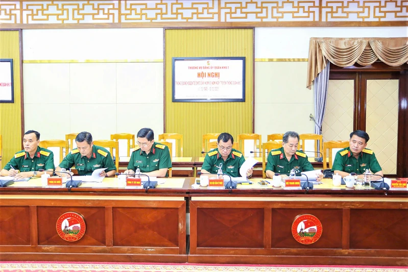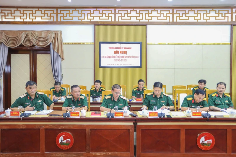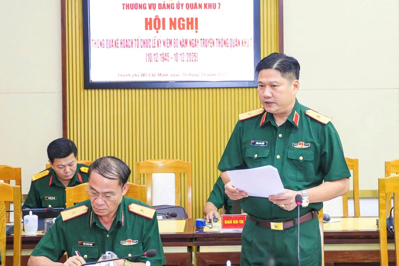 (QK7 Online) - Ngày 20/10, Thường vụ Đảng ủy, Bộ Tư lệnh Quân khu 7 tổ chức hội nghị thông qua kế hoạch tổ chức Lễ kỷ niệm 80 năm Ngày truyền thống Quân khu (10/12/1945 - 10/12/2025). Thiếu tướng Trần Vinh Ngọc, Bí thư Đảng ủy, Chính ủy Quân khu chủ trì hội nghị.