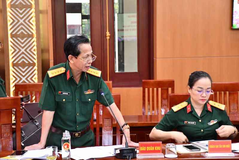 Thiếu tướng Phạm Anh Tuấn, Ủy viên Ban Thường vụ Đảng ủy Quân khu 7, Chủ nhiệm Chính trị Quân khu, Phó Trưởng Ban thường trực phát biểu tại hội nghị.