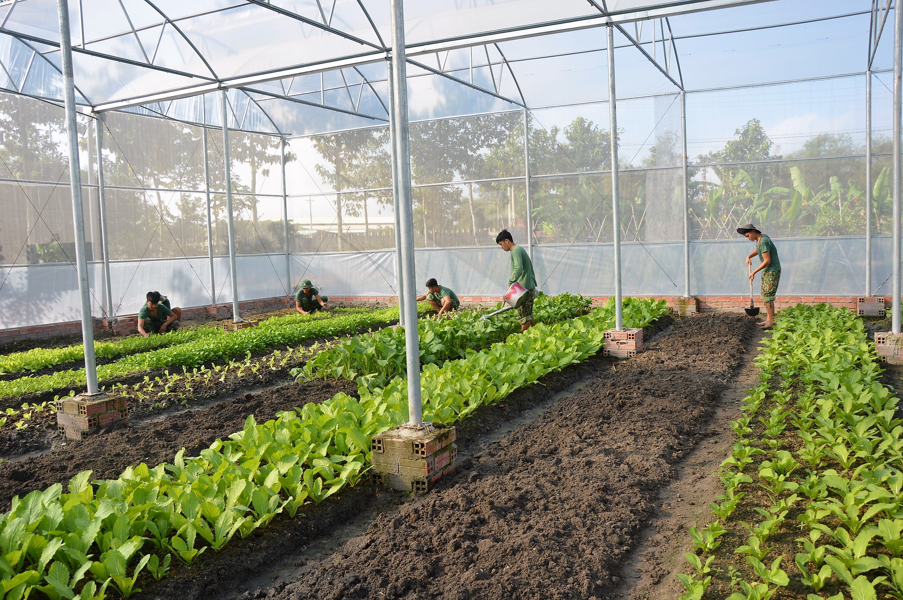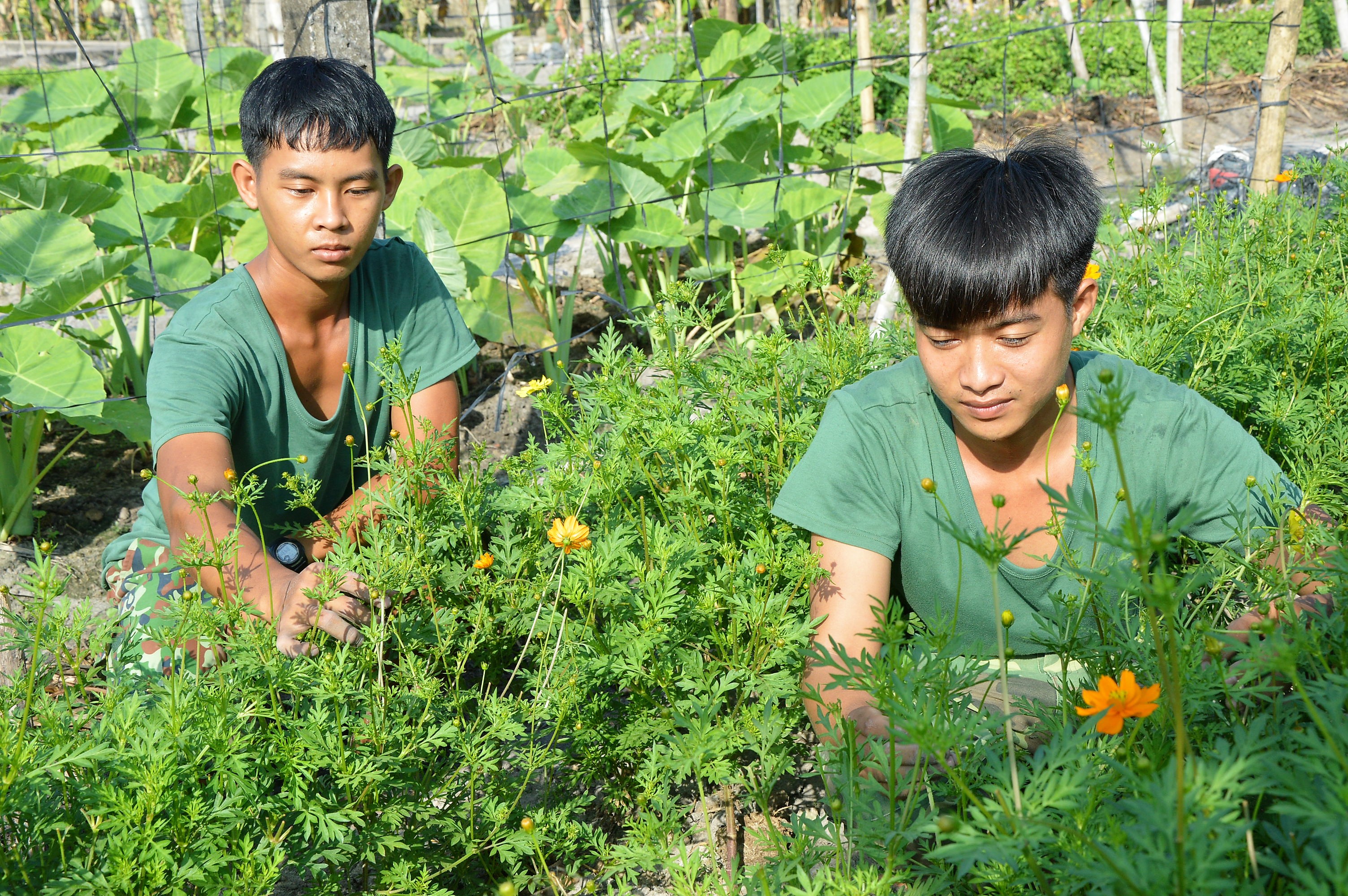 Chăm sóc rau xanh chuẩn bị cho tết ở Đại đội 61, huyện Bến Cầu, tỉnh Tây Ninh.