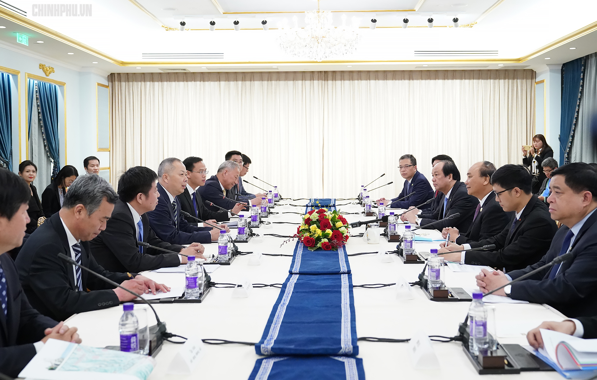 Thủ tướng tiếp đại diện các tập đoàn trong lĩnh vực cơ sở hạ tầng của Trung Quốc. Ảnh: VGP