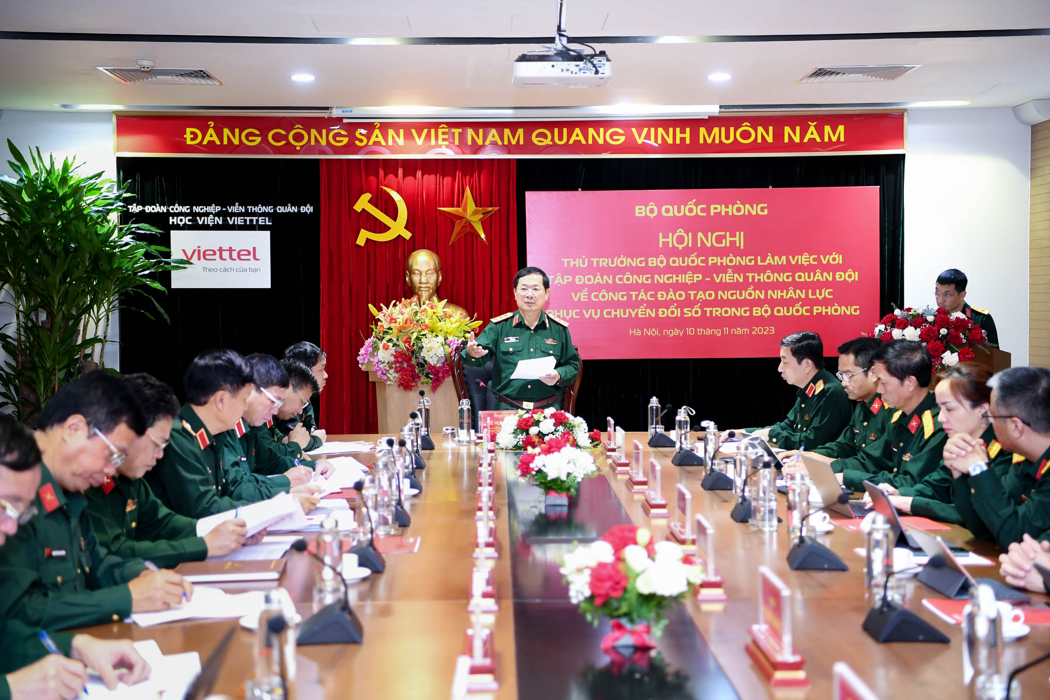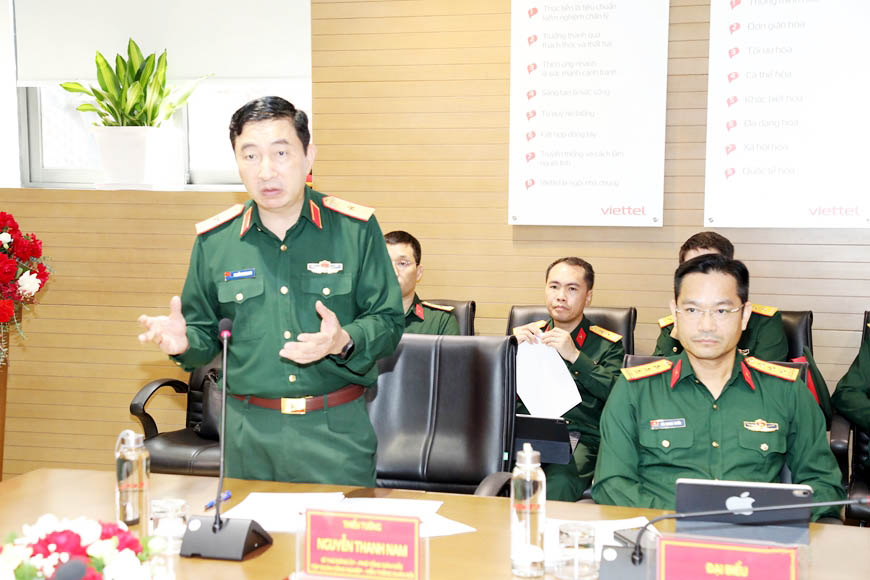 Tại buổi làm việc, các ý kiến trao đổi khẳng định quá trình chuyển đổi số trong Quân đội, quốc gia không thể thiếu Viettel. Thời gian qua, Viettel ngoài nhiệm vụ SXKD rất quan tâm đến công tác đào tạo nguồn nhân lực, đặc biệt là đào tạo nguồn nhân lực số và đã đạt được những kết quả nổi bật. Ngoài đào tạo, Tập đoàn cũng có chính sách thu hút, tuyển dụng nhân tài, thu hút các chuyên gia, nhà khoa học đầu ngành về CNTT trong và ngoài nước (số lượng nhân sự công nghệ số chiếm 30% tổng số nhân sự tại Tập đoàn); đầu tư, xây dựng cơ sở hạ tầng hiện đại, đồng bộ, đáp ứng tốt nhất các yêu cầu học tập; nghiên cứu, áp dụng nhiều mô hình học tập hiện đại.
