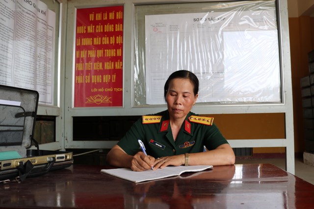 Đại úy CN Phan Thị Duân ghi nhật ký sau một ngày làm việc.