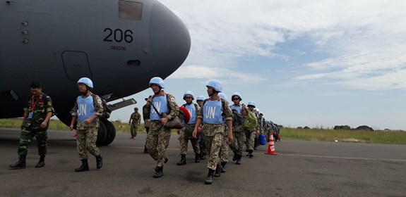 Đúng 10 giờ 41 phút sáng (giờ địa phương) ngày 17-10, chiếc máy bay vận tải C17 của Australia chở đội hình xuất quân đợt 2 cùng hàng hóa của Bệnh viện Dã chiến số 2 cấp 1 (BVDC 2.1) triển khai tới Phái bộ Gìn giữ hòa bình Liên hợp quốc ở Nam Sudan, đã hạ cánh an toàn tại Sân bay quốc tế Juba, Nam Sudan.
