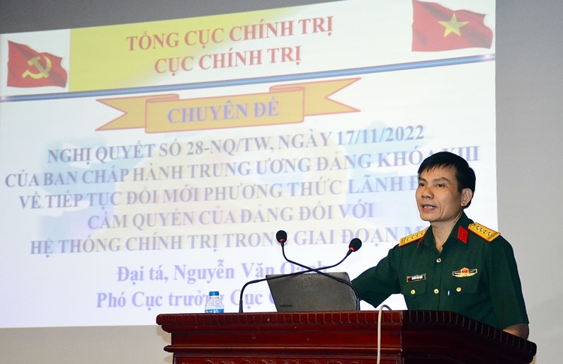 Cán bộ, đảng viên các cơ quan, đơn vị thuộc Tổng cục Chính trị QĐND Việt Nam tại TP Hồ Chí Minh được quán triệt, học tập các chuyên đề gồm: Nghị quyết số 27 về “Tiếp tục xây dựng và hoàn thiện Nhà nước pháp quyền xã hội chủ nghĩa Việt Nam trong giai đoạn mới”; Nghị quyết số 28 về “Tiếp tục đổi mới phương thức lãnh đạo, cầm quyền của Đảng đối với hệ thống chính trị trong giai đoạn mới”; Nghị quyết số 29 về “Tiếp tục đẩy mạnh công nghiệp hóa, hiện đại hóa đất nước đến năm 2030, tầm nhìn đến năm 2045”; Kết luận số 45 về “Định hướng quy hoạch tổng thể quốc gia thời kỳ 2021-2030, tầm nhìn đến năm 2050”.