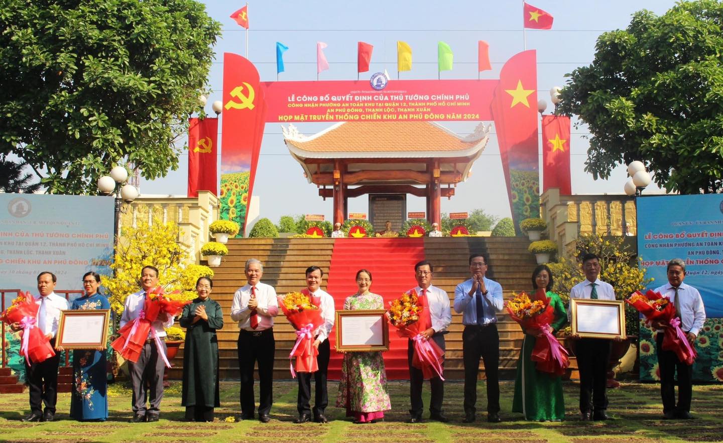 Trước khi vào buổi lễ, các đại biểu dâng hoa, dâng hương tưởng nhớ các anh hùng, liệt sĩ đã hi sinh tại chiến khu An Phú Đông trong suốt 30 năm kháng chiến chống thực dân Pháp và đế quốc Mỹ. Ban tổ chức công bố Quyết định số 977/QĐ-TTg ngày 21 tháng 8 năm 2023 của Thủ tướng Chính phủ về việc công nhận xã, phường An toàn khu đối với 3 phường của Quận 12 gồm An Phú Đông, Thạnh Lộc, Thạnh Xuân. Trong giai đoạn kháng chiến chống Pháp và chống Mỹ, vùng đất ven đô này đã trở thành căn cứ vững chắc để xây dựng và phát triển lực lượng vũ trang địa phương, là nơi các đồng chí lãnh đạo cách mạng vận động, giáo dục, tuyên truyền nhằm xây dựng cơ sở cách mạng. Với những chiến công xuất sắc trong công cuộc bảo vệ Tổ quốc, Đảng bộ và Nhân dân 3 phường An Phú Đông, Thạnh Lộc, Thạnh Xuân của Quận 12 được Chủ tịch nước tặng thưởng danh hiệu Anh hùng Lực lượng vũ trang Nhân dân.