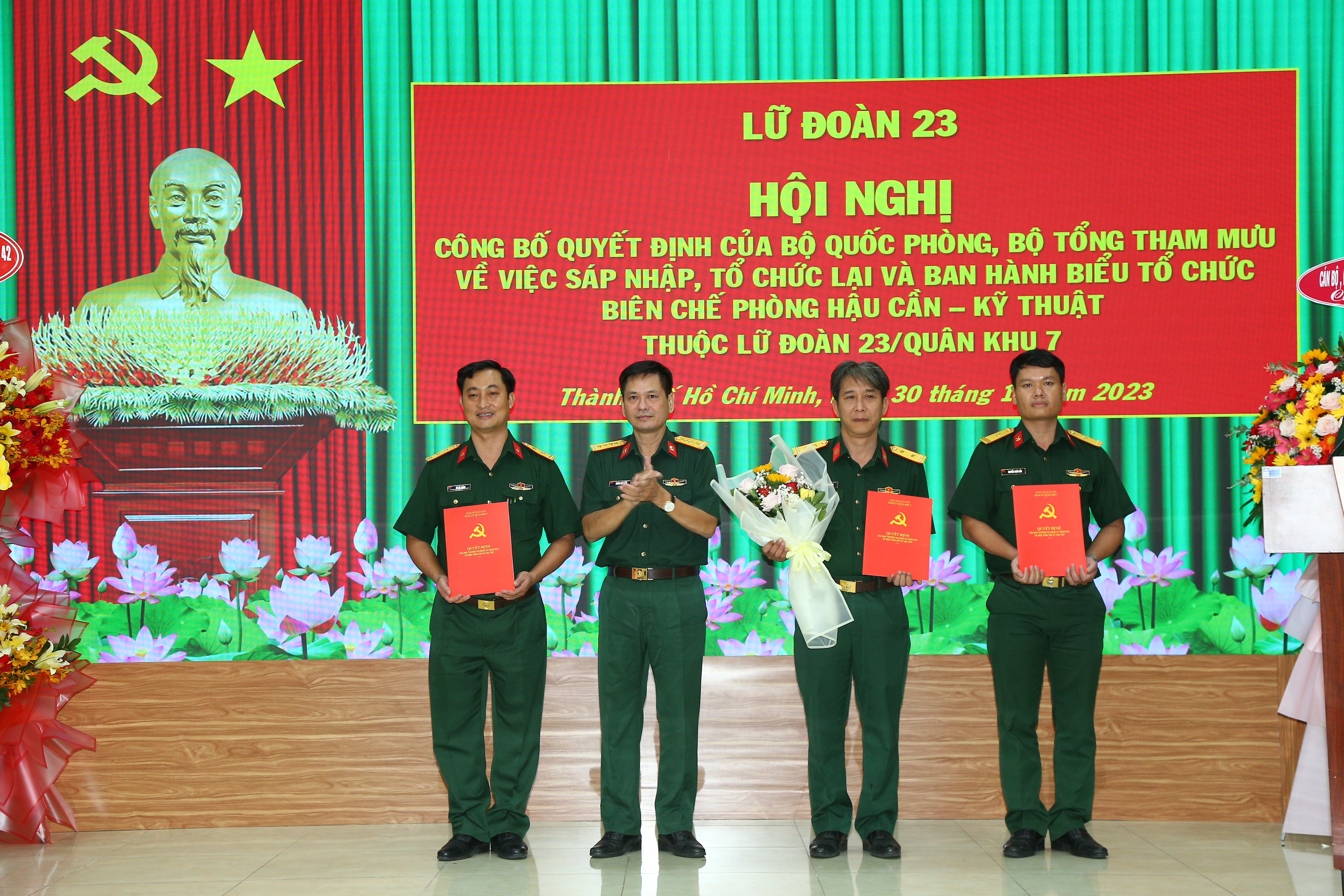 Tại hội nghị, Đảng ủy, Chỉ huy Lữ đoàn 77 và Lữ đoàn 23 công bố các quyết định của trên về việc sáp nhập và tổ chức lại Phòng Hậu cần, Phòng Kỹ thuật thành Phòng Hậu cần – Kỹ thuật cũng như các quyết định điều động, bổ nhiệm cán bộ; các quyết định bổ nhiệm chức vụ cán bộ của Quân khu; điều động cán bộ của lữ đoàn; điều động QNCN và thành lập Đảng bộ Phòng Hậu cần – Kỹ thuật.