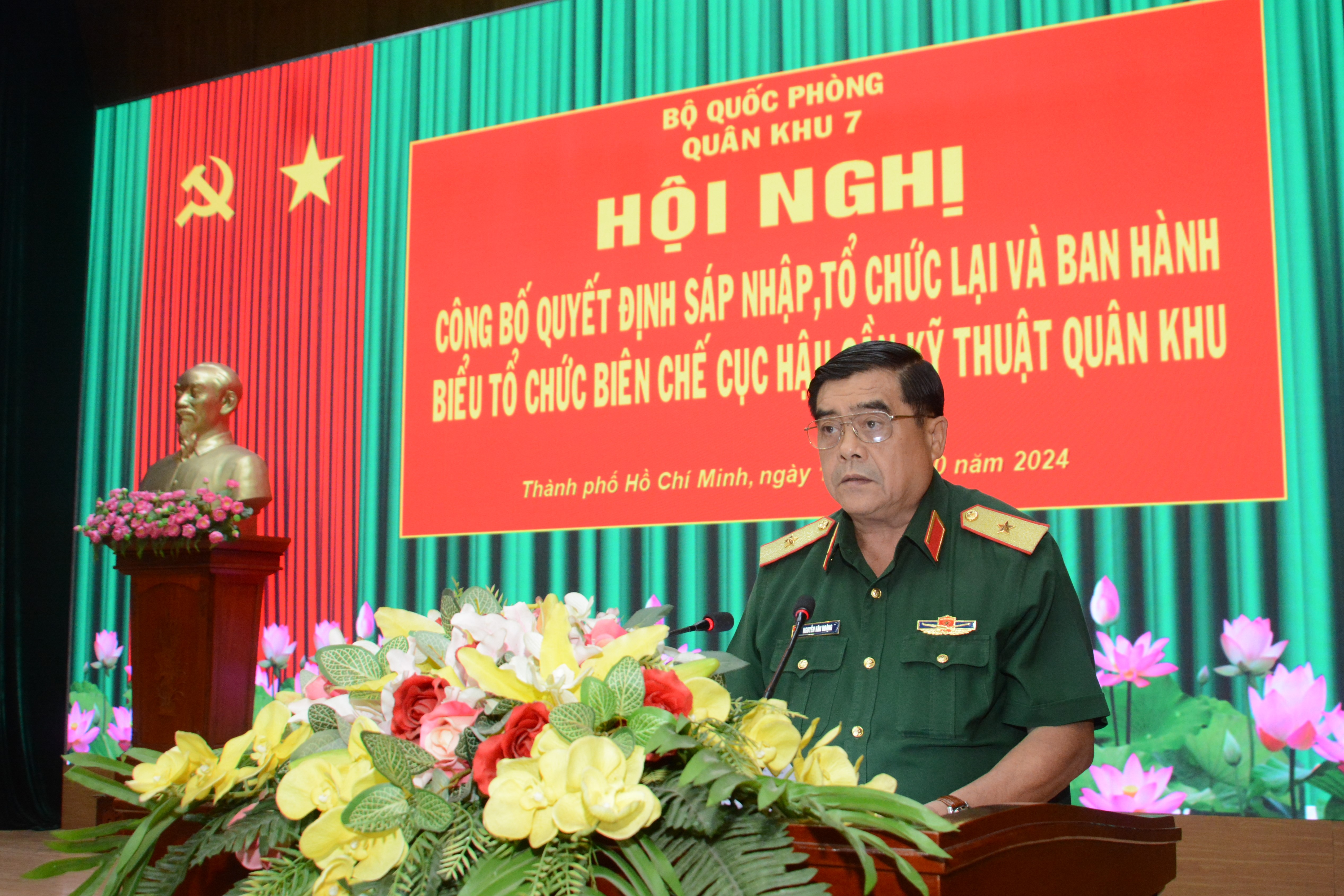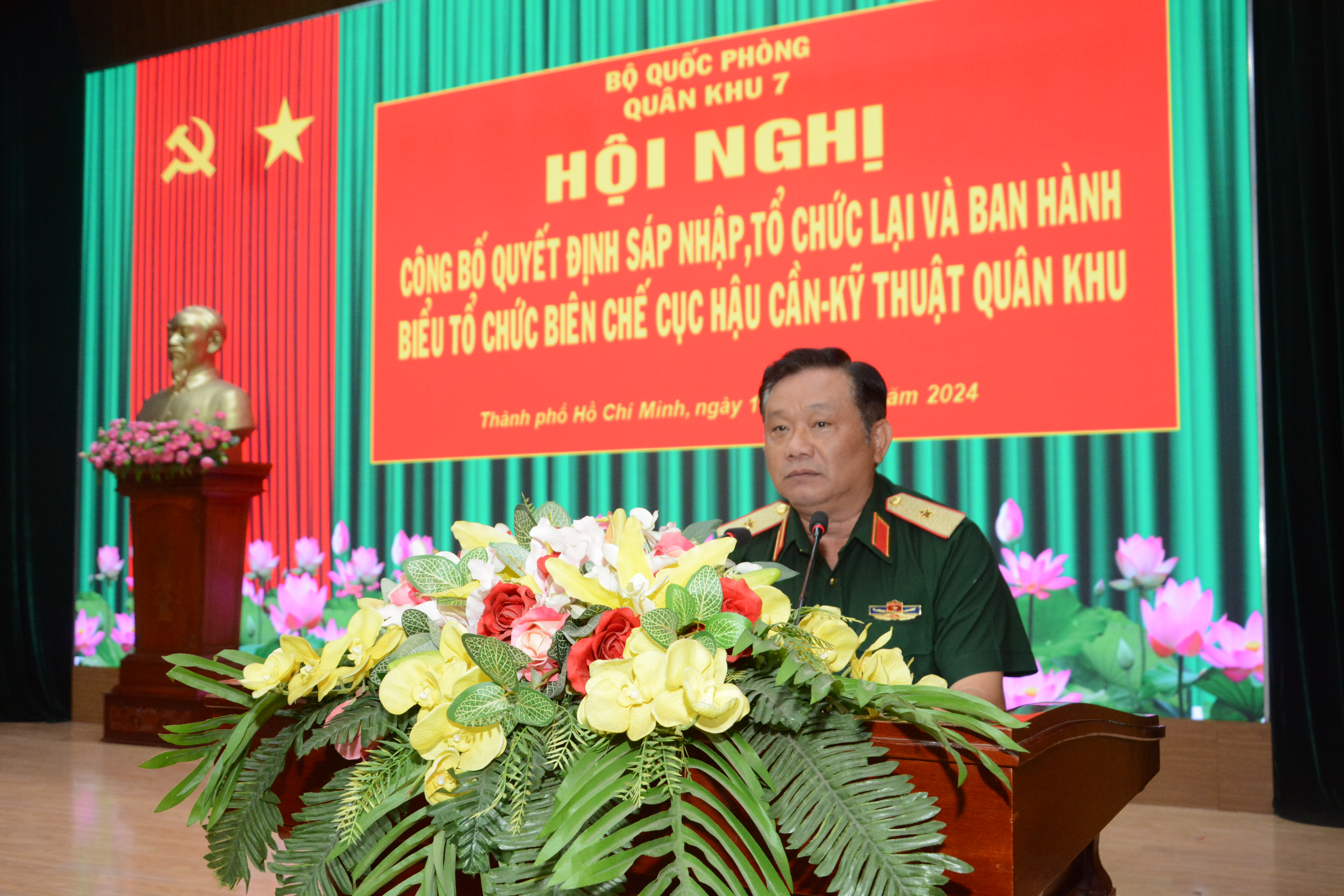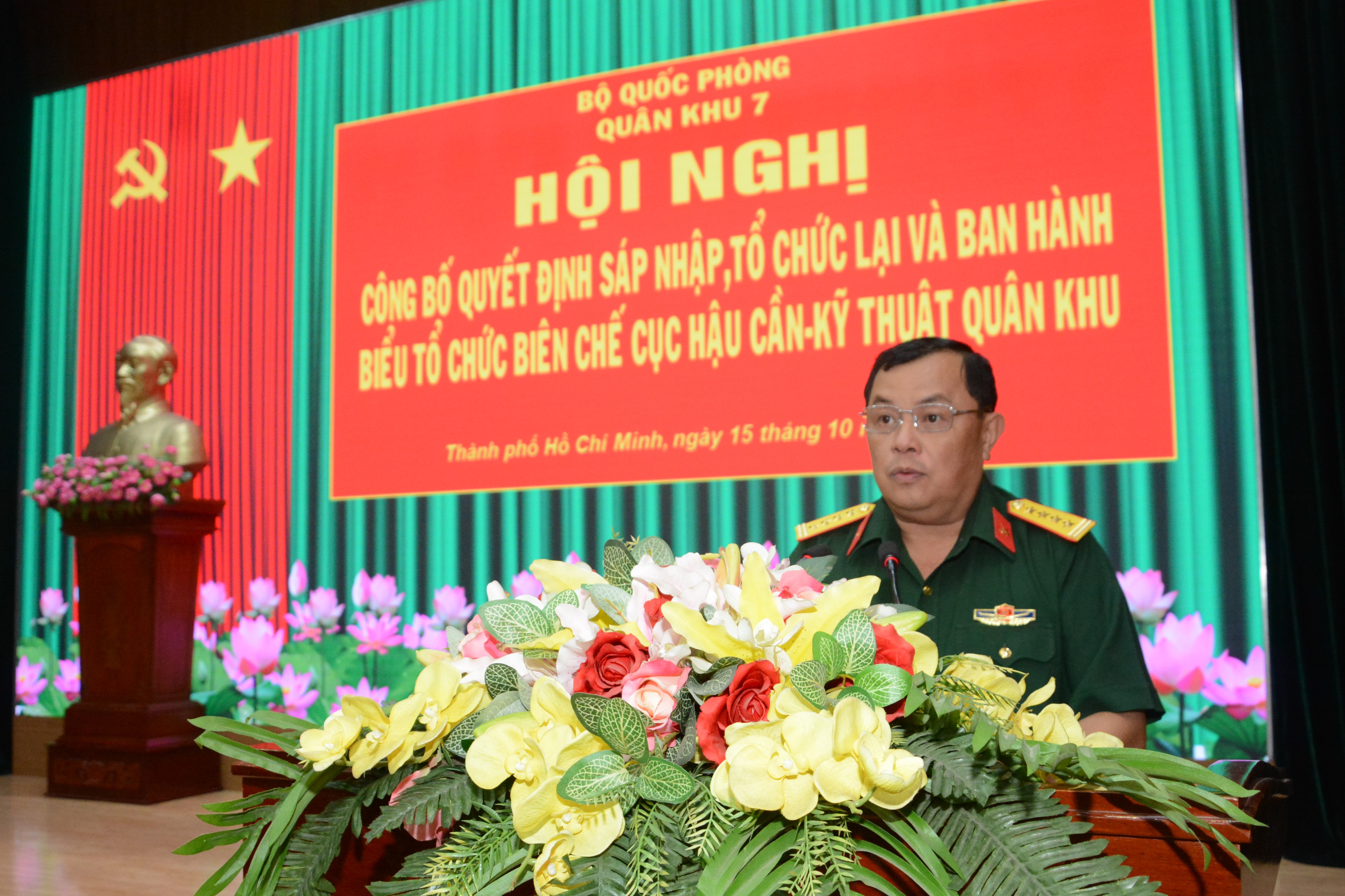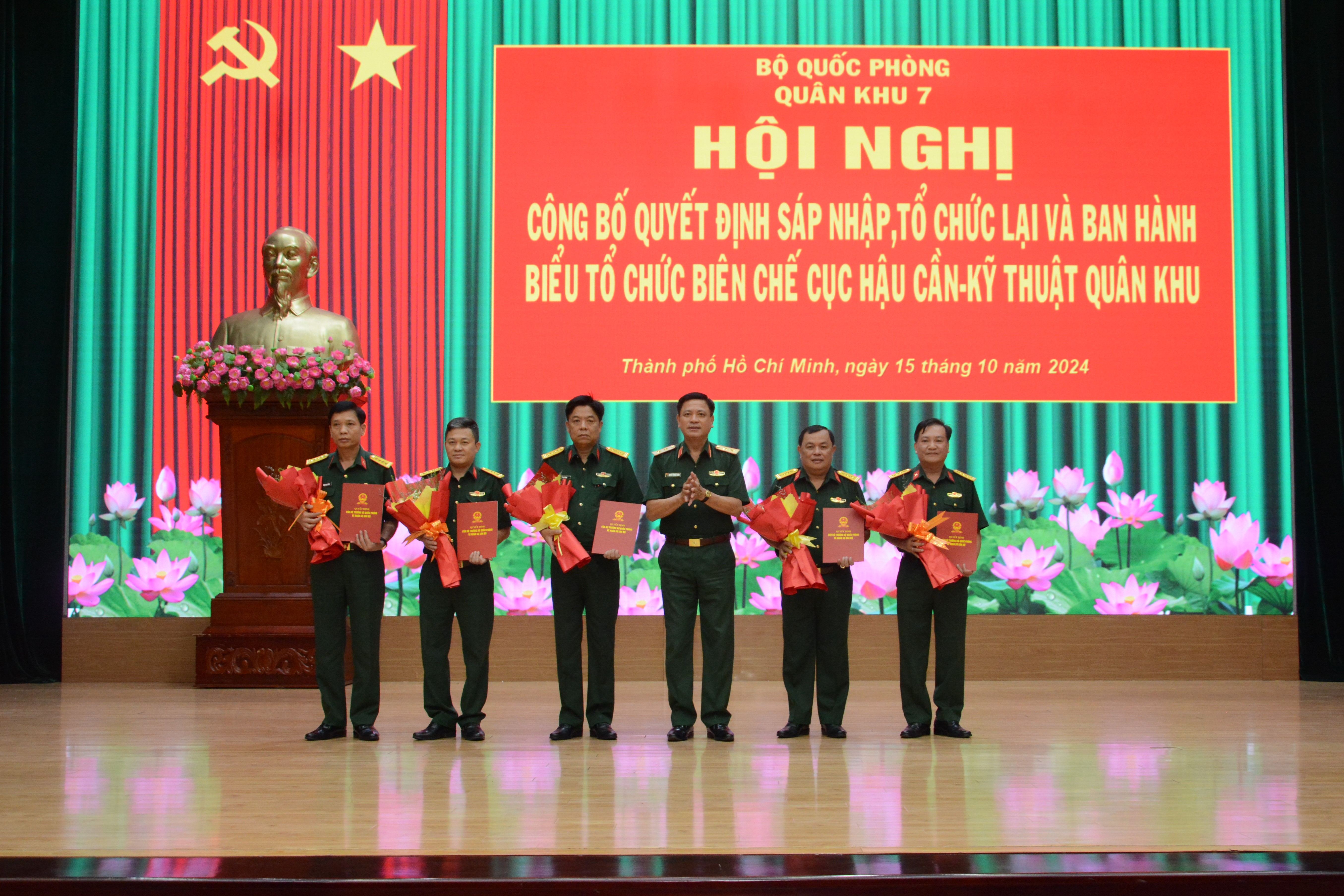 Tại Hội nghị, các đại biểu được nghe công bố Quyết định của Bộ Quốc phòng về việc sáp nhập và tổ chức lại Cục Hậu cần, Cục Kỹ thuật thành Cục Hậu cần - Kỹ thuật thuộc Bộ Tư lệnh Quân khu 7; Quyết định của Bộ Tổng Tham mưu về việc ban hành biểu tổ chức, biên chế cơ quan Cục Hậu cần - Kỹ thuật thuộc Bộ Tư lệnh Quân khu 7; Quyết định của Ban Thường vụ Đảng ủy Quân khu về việc thành lập Đảng bộ Cục Hậu cần - Kỹ thuật và giao phụ trách đối với cán bộ.