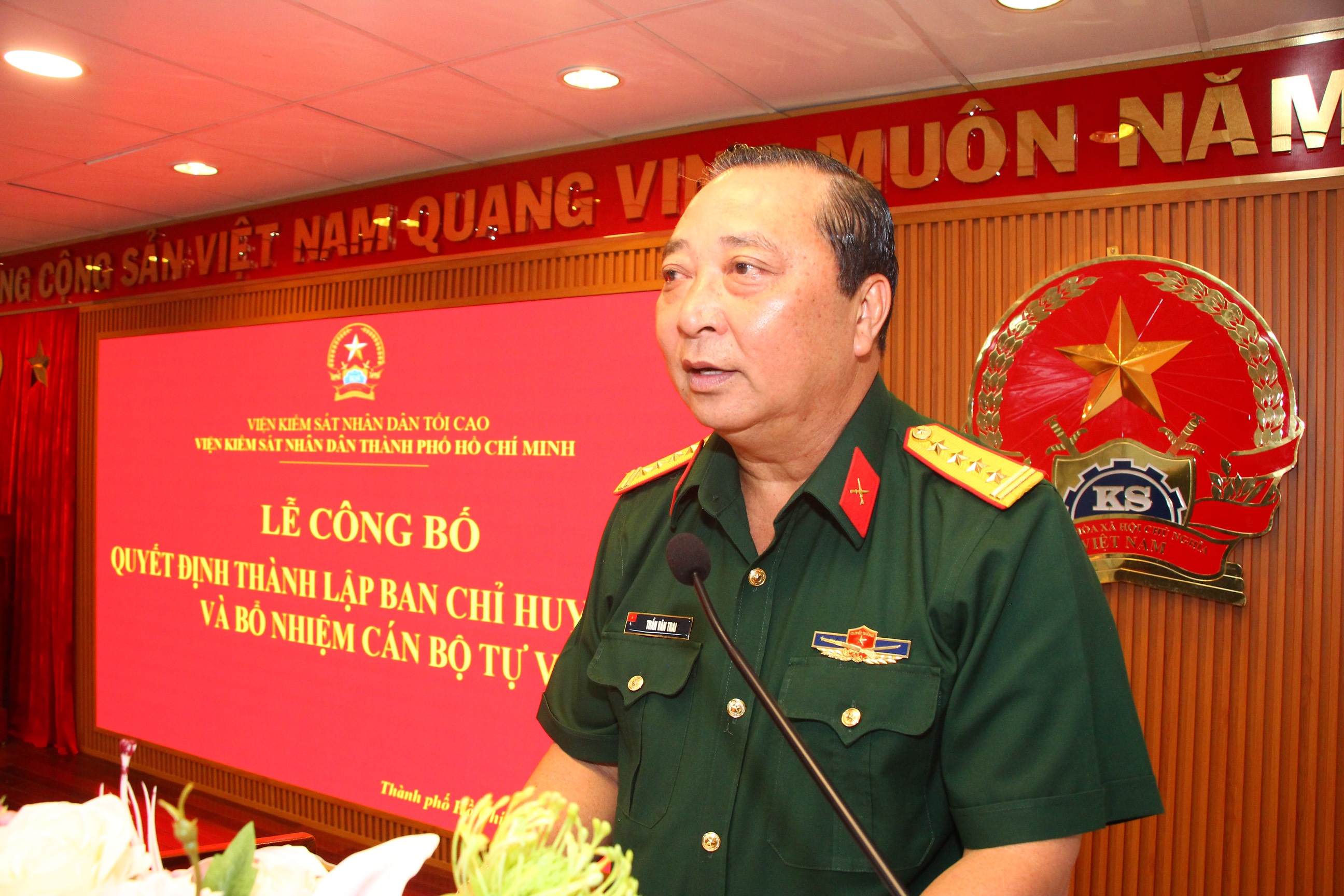 Đại tá Trần Văn Trai trao quyết định thành lập Ban Chỉ huy Quân sự Viện Kiểm sát Nhân dân TPHCM.