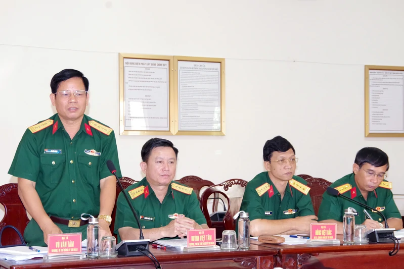 Đại tá Vũ Văn Tám, Chính ủy Sư đoàn 309 báo cáo công tác chuẩn bị phục vụ giám sát.
