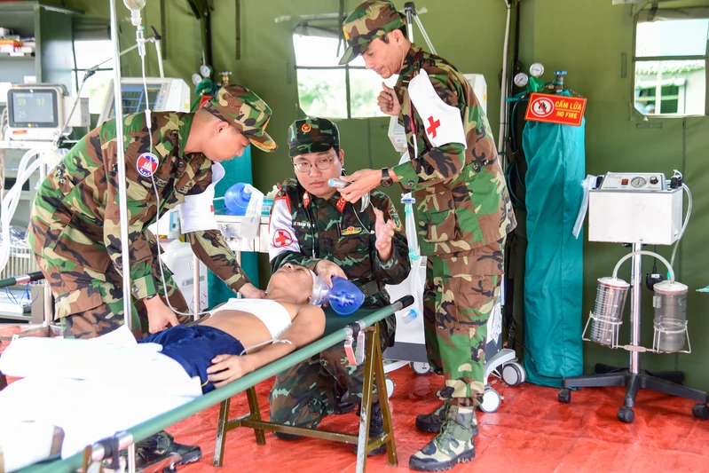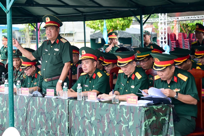 Thiếu tướng Huỳnh Tấn Hùng, Phó Chủ nhiệm Tổng cục Hậu cần - Kỹ thuật động viên các lực lượng tham gia diễn tập chung quân y Quân đội hai nước Việt Nam - Campuchia.
