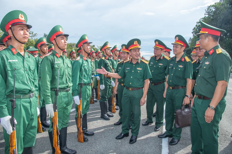 Đại tá Nguyễn Tấn Linh cùng đoàn công tác thăm hỏi, động viên cán bộ, chiến sĩ Sư đoàn 5 đảm nhiệm khối tiêu binh danh dự.