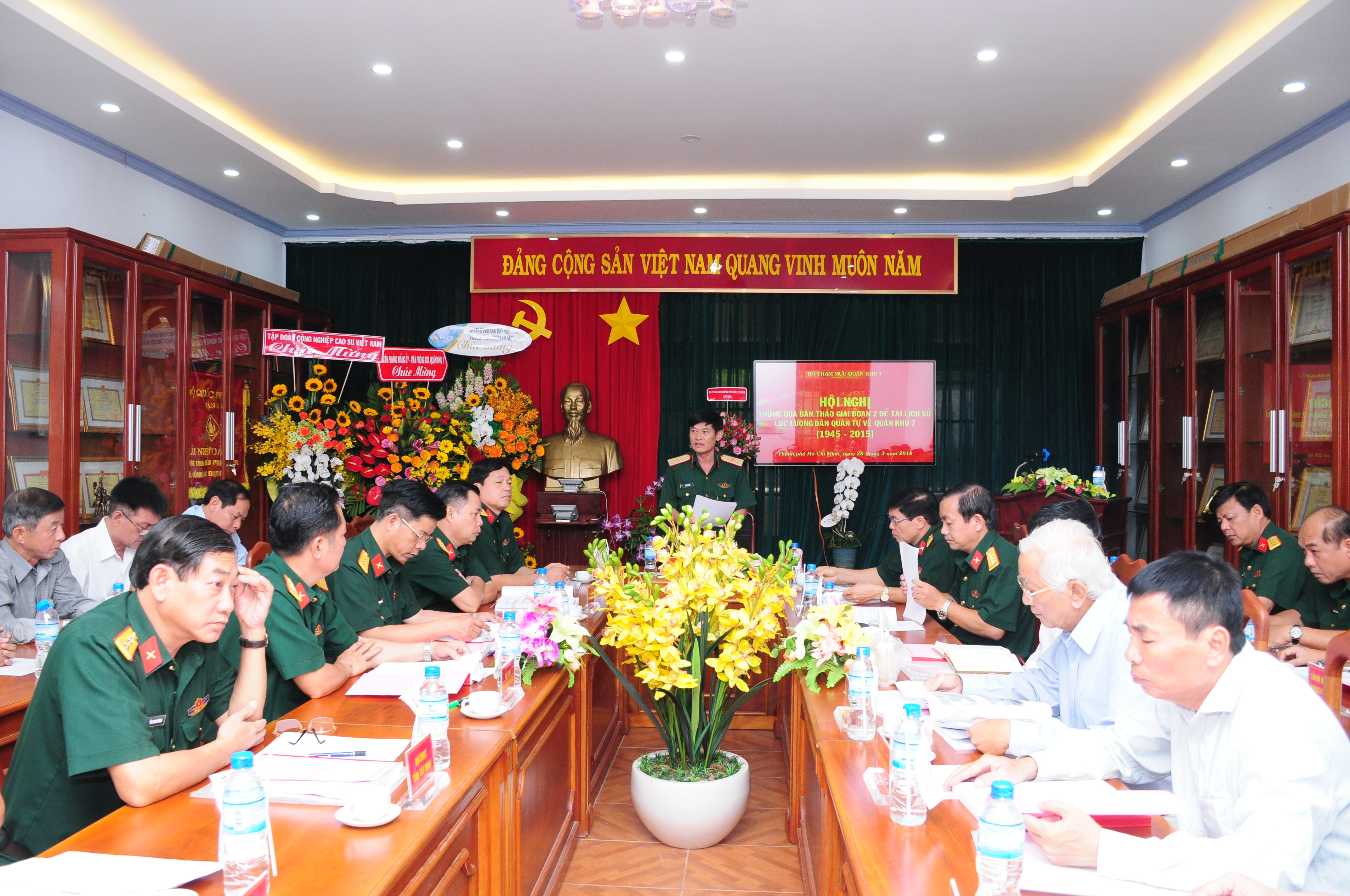 Dịp này, Bộ Tham mưu quân khu tổ chức hội nghị thông qua bản thảo giai đoạn 2, đề tài Lịch sử lực lượng DQTV Quân khu 7 (1945 -2015) gồm: phần mở đầu về đặc điểm địa lý và dân cư Quân khu 7, truyền thống quân du kích Nam Kỳ và lực lượng dân quân du kích tự vệ miền Đông Nam Bộ trước Cách mạng tháng 8, kèm theo đó bản thảo có 4 chương với gần 500 trang A4. Qua hội nghị nhiều ý kiến đóng góp của các đại biểu mong muốn bản thảo hoàn thành sớm. Ban biên soạn tiếp tục bổ sung và chỉnh sửa để hoàn chỉnh trong thời gian tới.