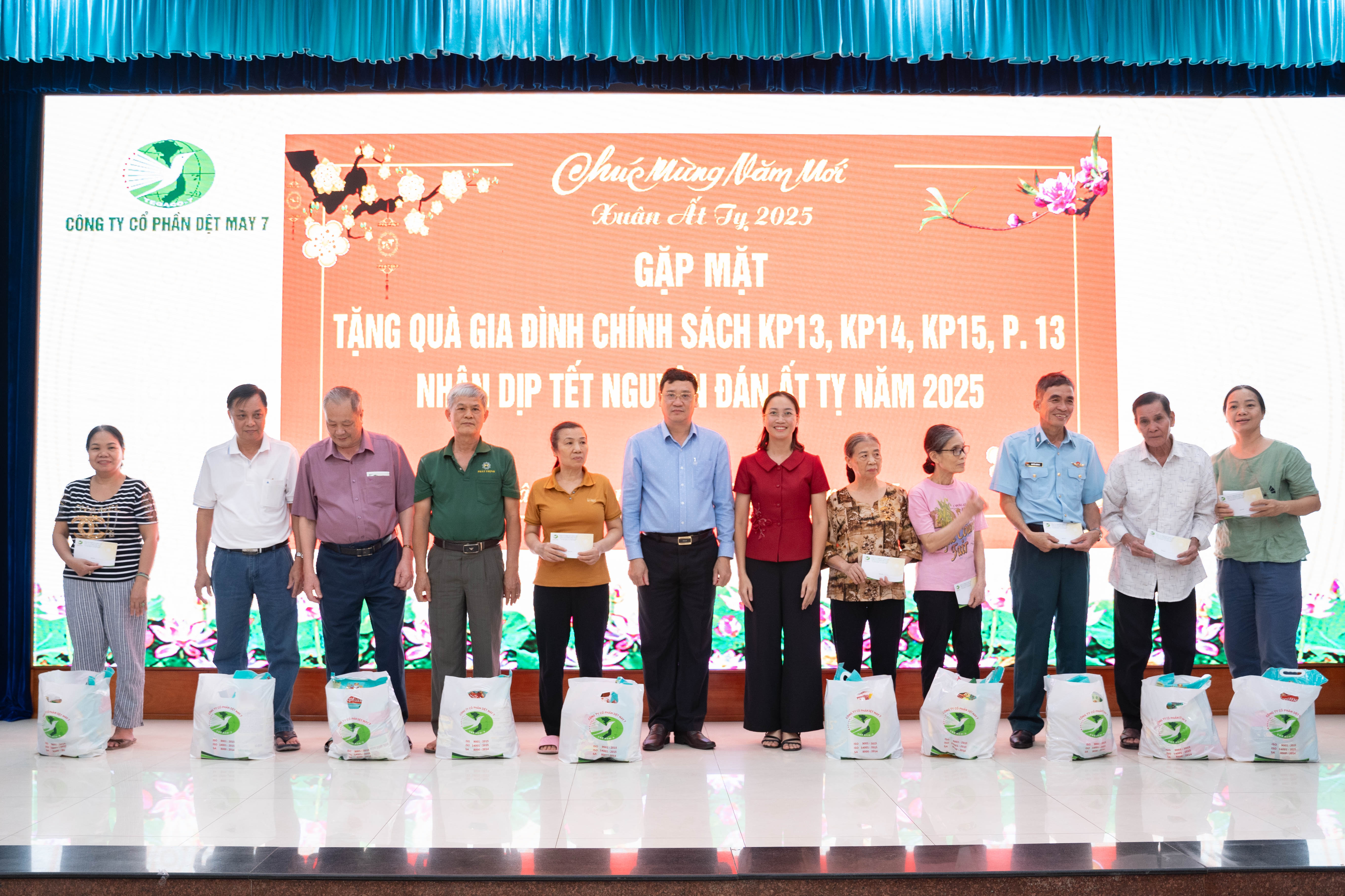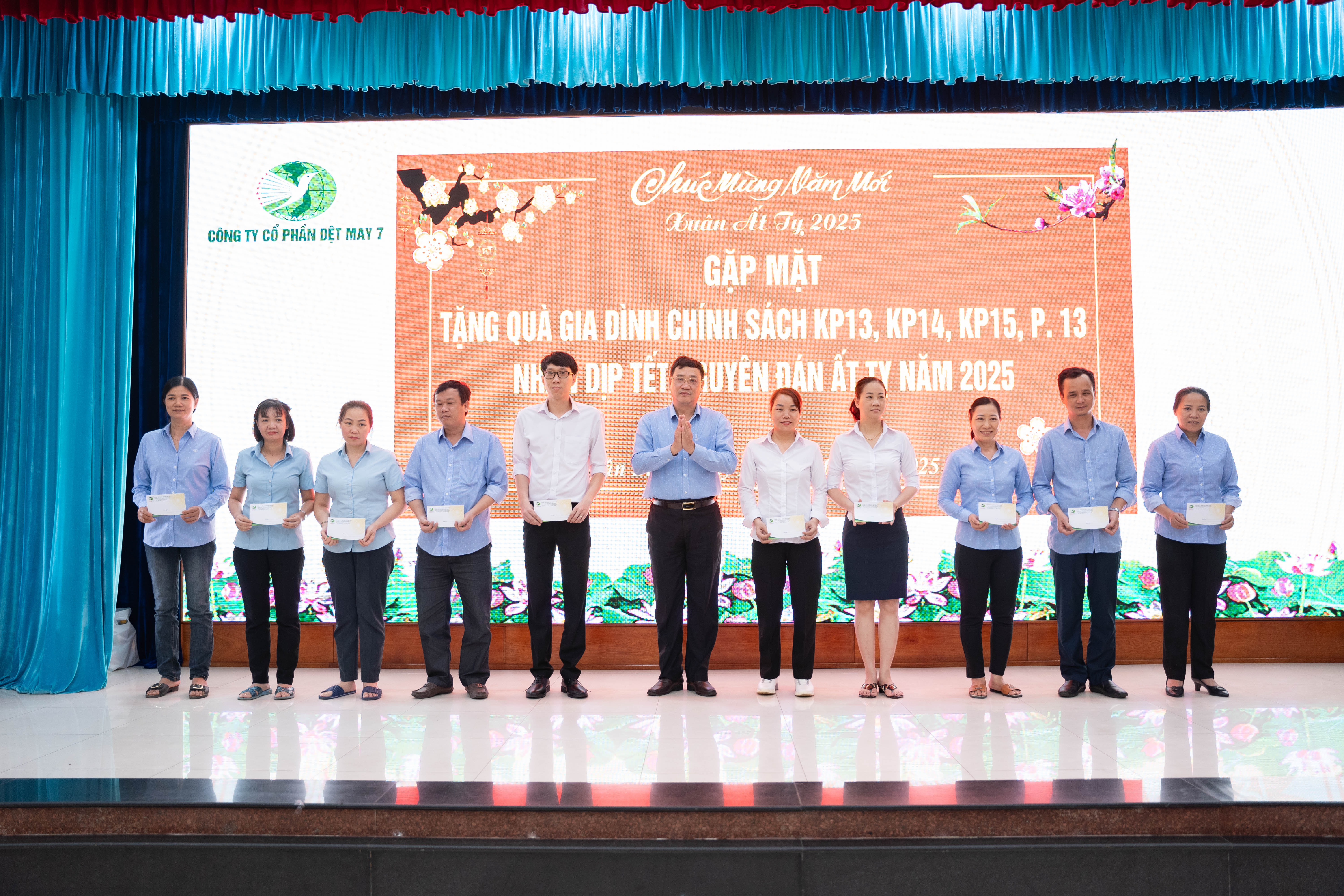 Lãnh đạo Công ty Dệt may 7 và chính quyền địa phương tặng quà cho các gia đình chính sách.
