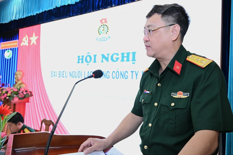 Đại tá Nguyễn Mạnh Tùng, Bí thư Đảng ủy, Chủ tịch Hội đồng quản trị (HĐQT) Công ty dự hội nghị.