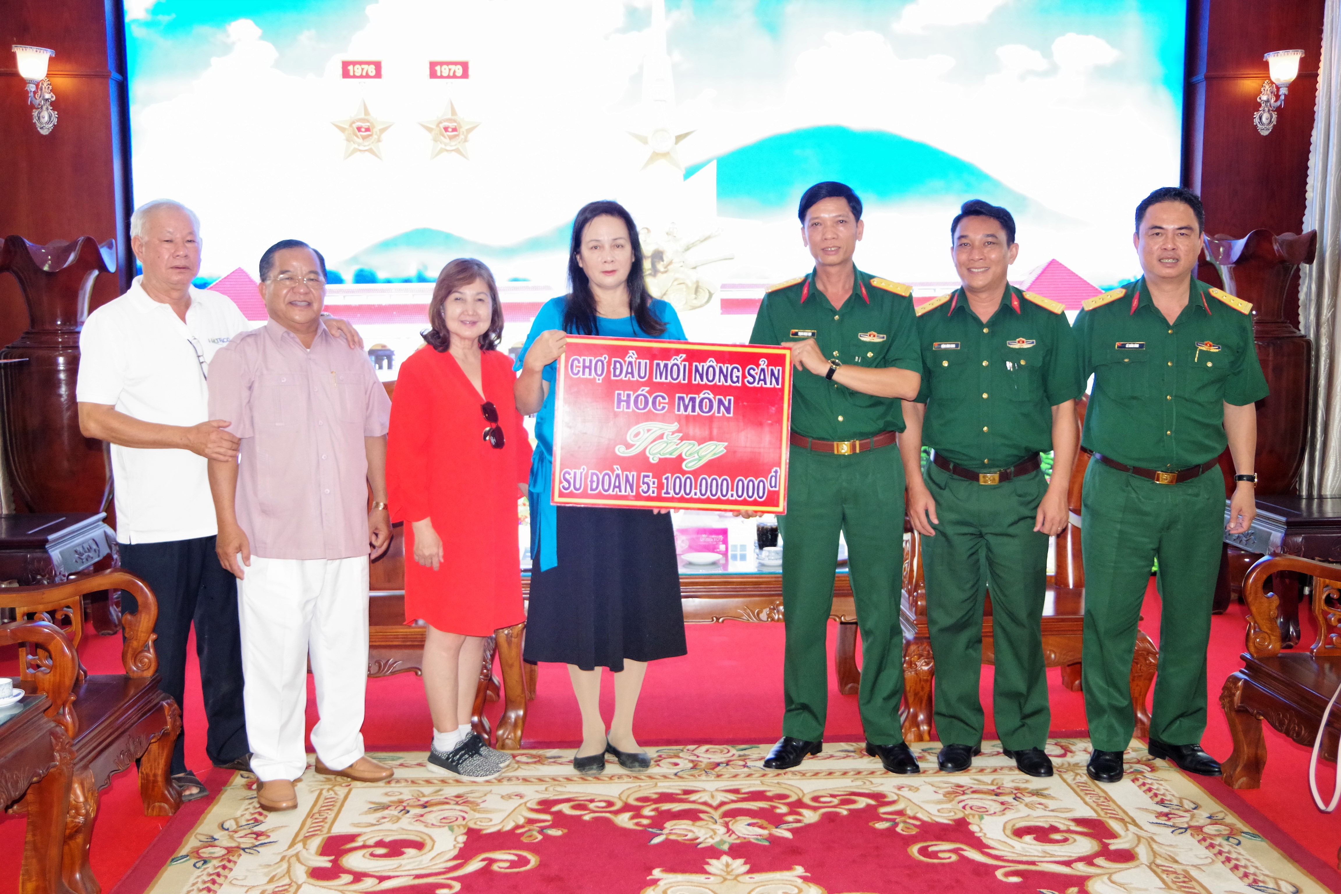 Công ty cổ phần Hóc Môn và Ban quản lý chợ đầu mối nông sản thực phẩm Hóc Môn thăm, tặng quà Sư đoàn 5