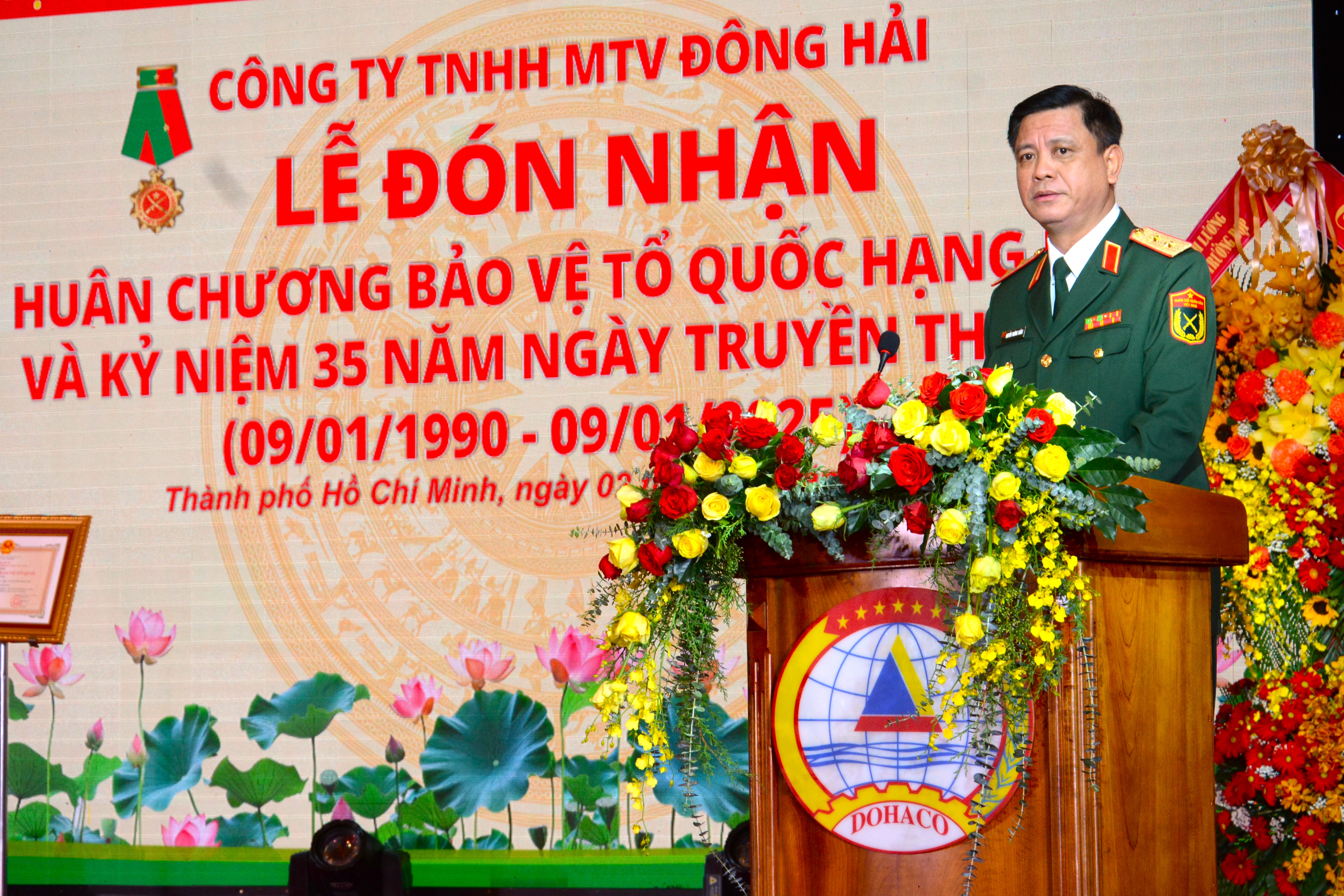 Đại tá Lê Đức Hiền, Tổng Giám đốc Công ty Đông Hải bày tỏ lòng biết ơn sâu sắc đối với sự quan tâm lãnh đạo, chỉ đạo của Quân ủy Trung ương, Bộ Quốc phòng, các cơ quan Bộ Quốc phòng; Thường vụ Đảng ủy, Bộ Tư lệnh Quân khu 7.
