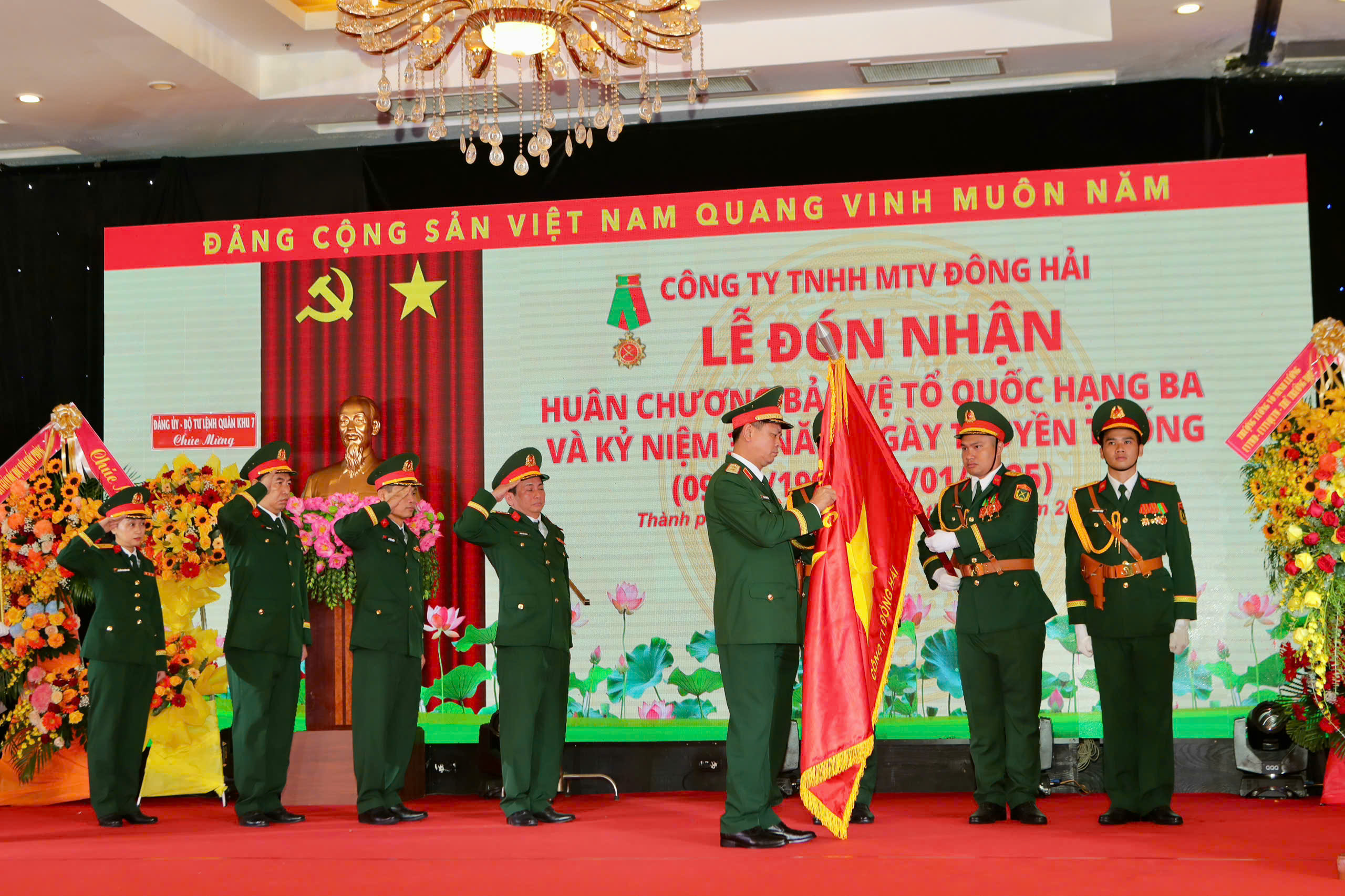 Thừa ủy của Chủ tịch nước, Trung tướng Nguyễn Trường Thắng, Tư lệnh Quân khu trao Huân chương bảo vệ Tổ quốc hạng Ba cho Công ty Đông Hải.