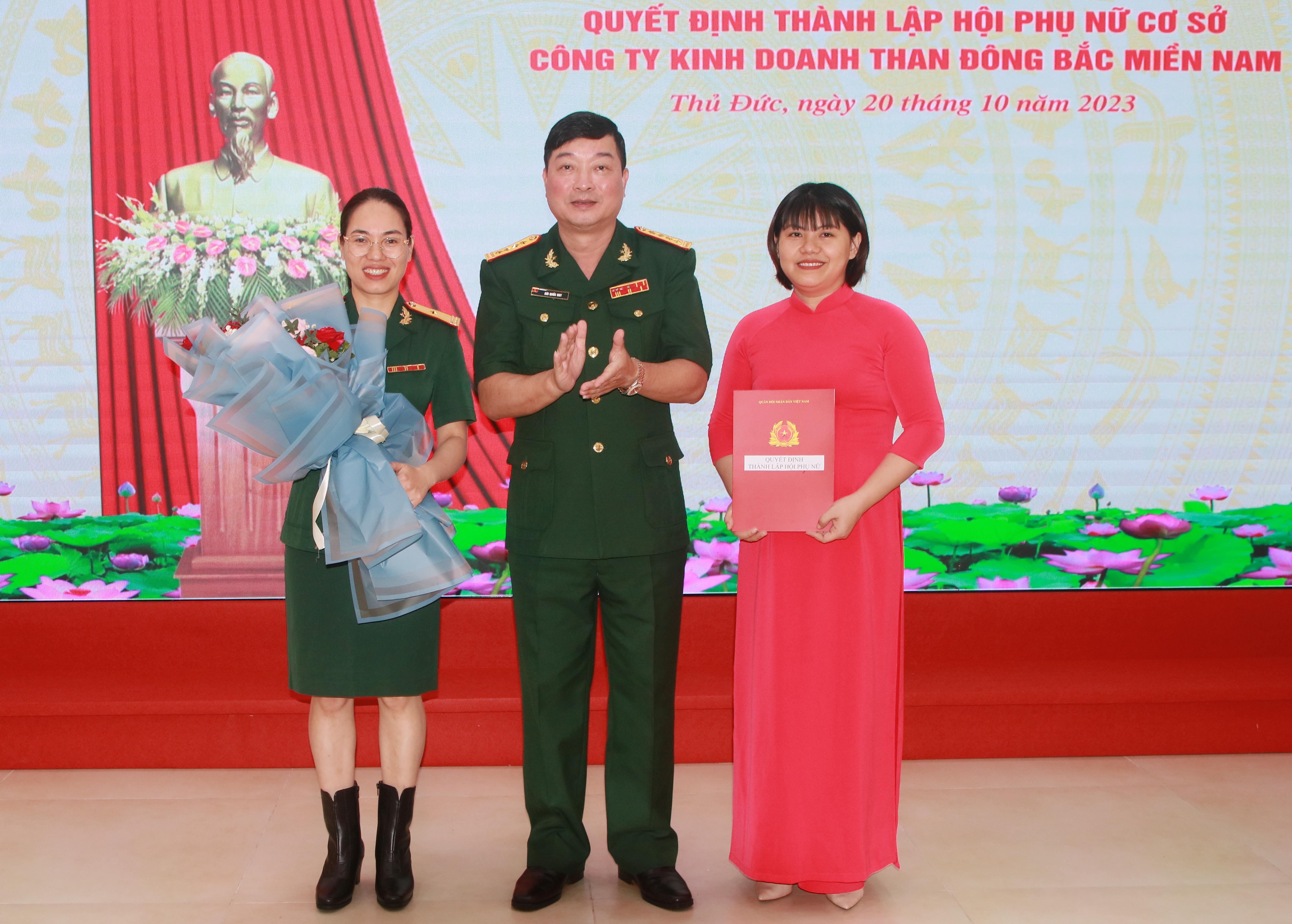 Thay mặt Đảng ủy, Ban Giám đốc Công ty, Thượng tá Phạm Văn Đại, Bí thư Đảng ủy, Phó Giám đốc Công ty kinh doanh than Đông Bắc miền Nam công bố quyết định thành lập Hội Phụ nữ cơ sở Công ty Kinh doanh than Đông Bắc. Đại tá Bùi Quốc Huy, Phó bí thư Đảng ủy, Giám đốc Công ty trao quyết định thành lập Hội phụ nữ cơ sở Công ty.