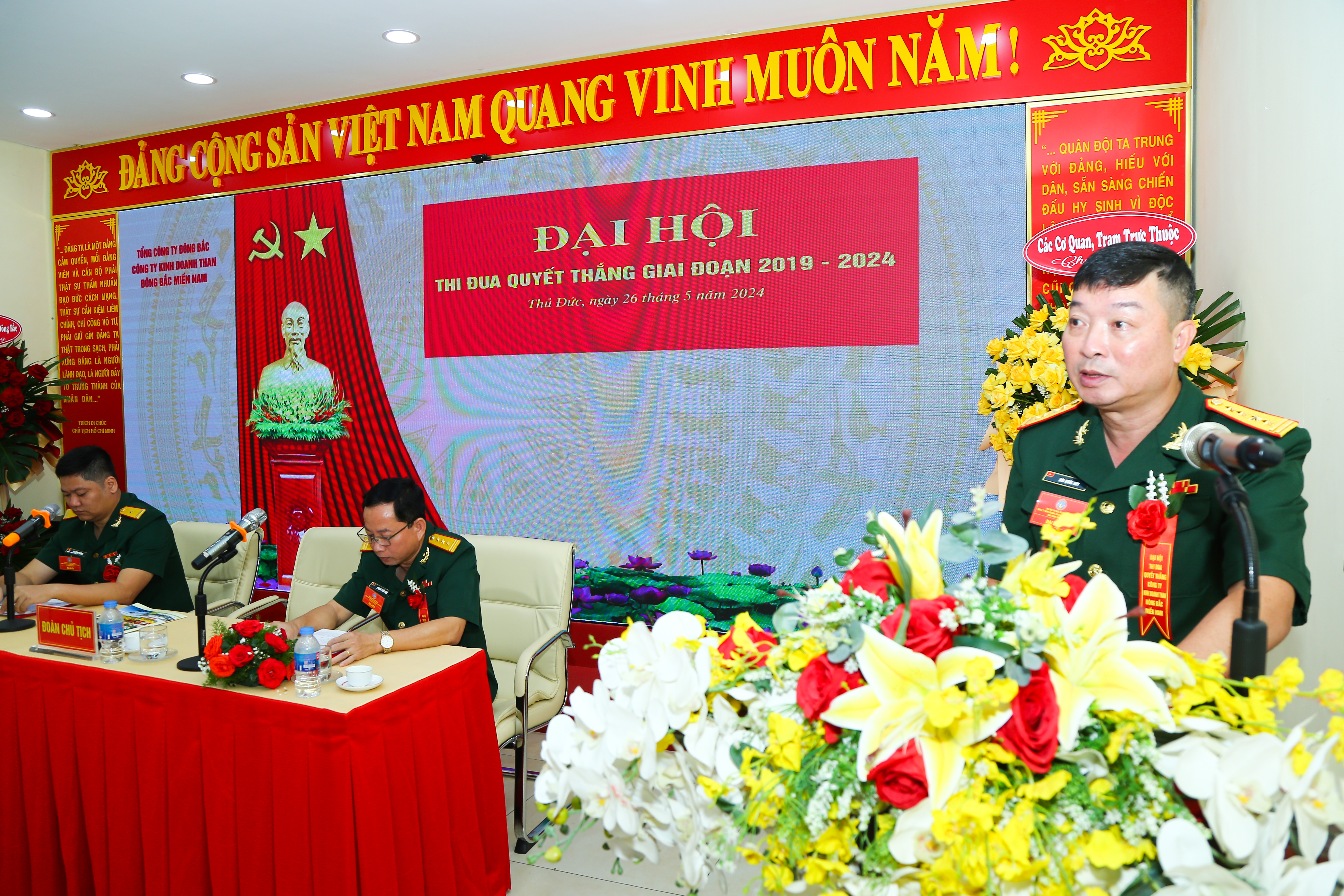 Đại tá Trần Duy Lê, Bí thư Đảng ủy, Chủ tịch Tổng Công ty Đông Bắc phát biểu chỉ đạo Đại hội.