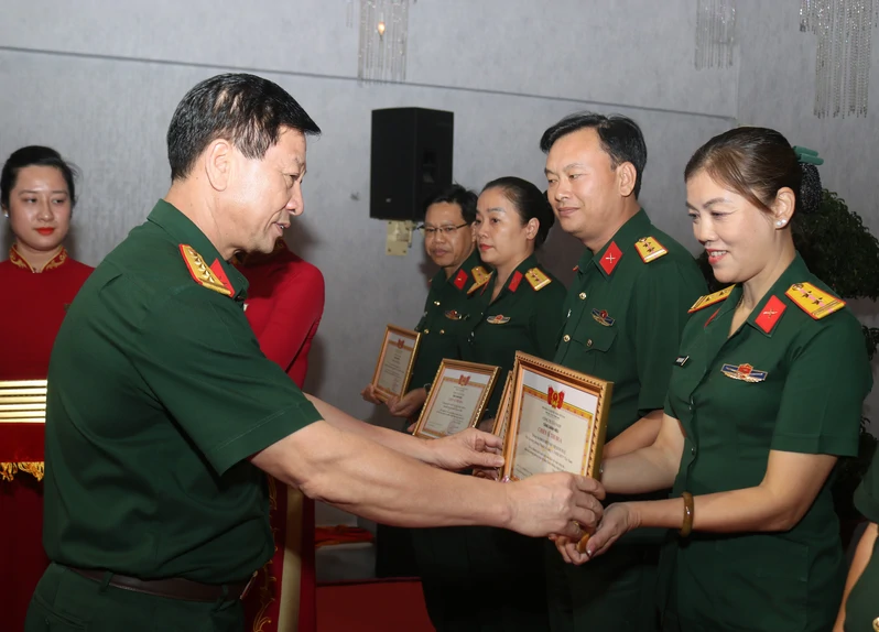 Thượng tá Trần Thị Mỹ Châu, Phó Tổng Giám đốc Công ty khen thưởng cho các tập thể, cá nhân.