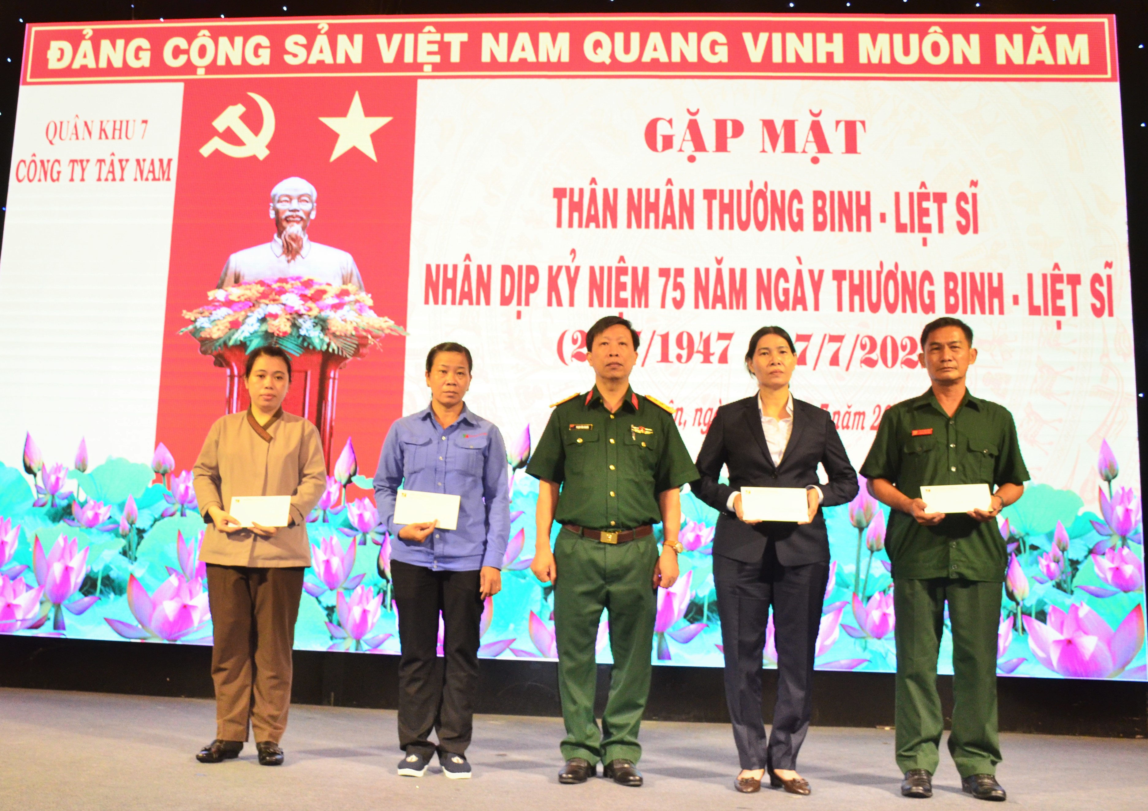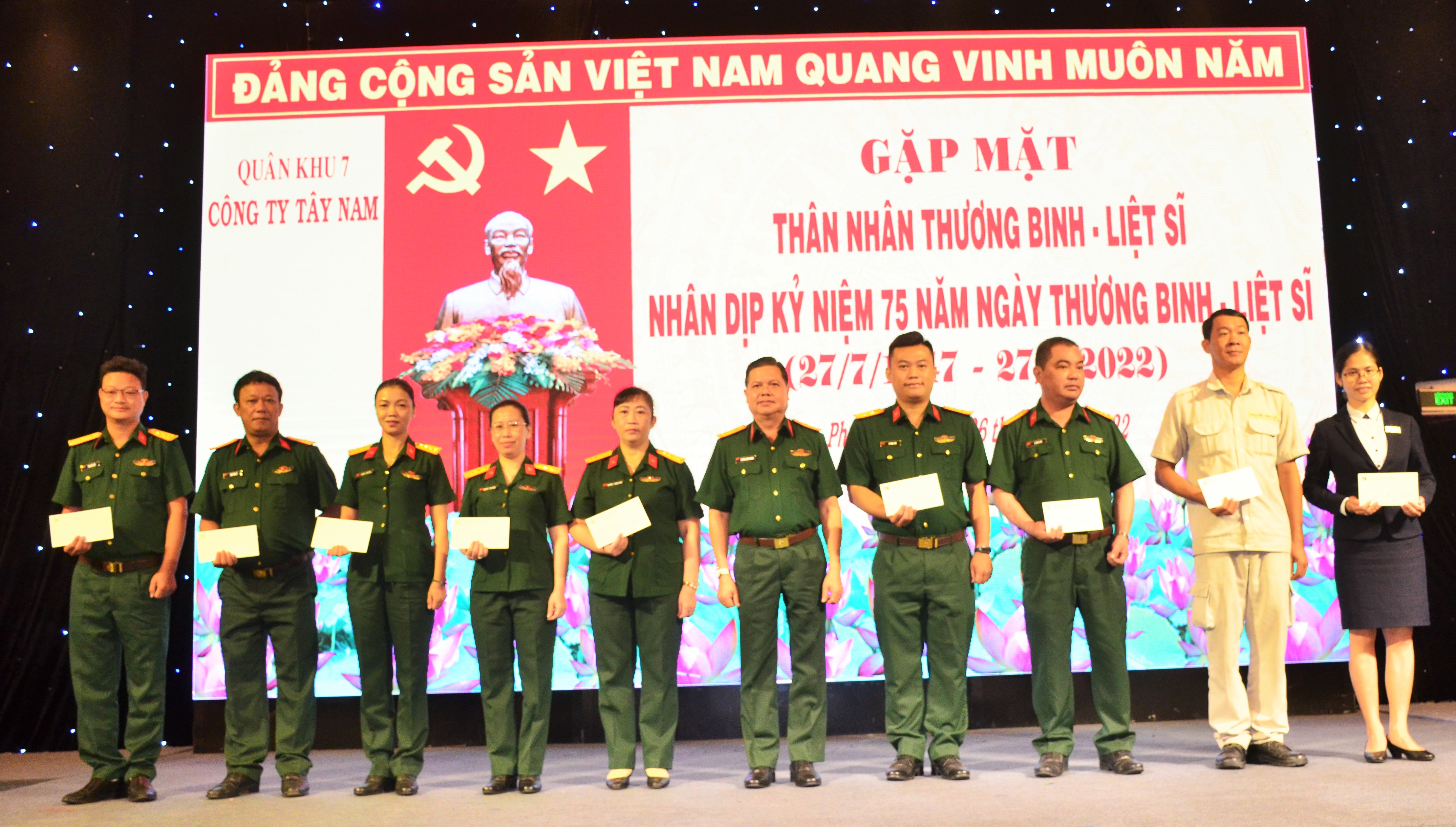 Tại buổi gặp mặt, Thượng tá Trương Kim Hoàng, Bí thư Đảng ủy, Chủ tịch Công ty đã tặng quà cho cán bộ, công nhân viên Công ty là thân nhân liệt sĩ, con thương binh, bệnh binh. Đồng thời, mong muốn các đồng chí tiếp tục cố gắng, phát huy hơn nữa truyền thống cách mạng, gương mẫu đi đầu trong mọi hoạt động, vượt khó vươn lên hoàn thành tốt nhiệm vụ được giao.